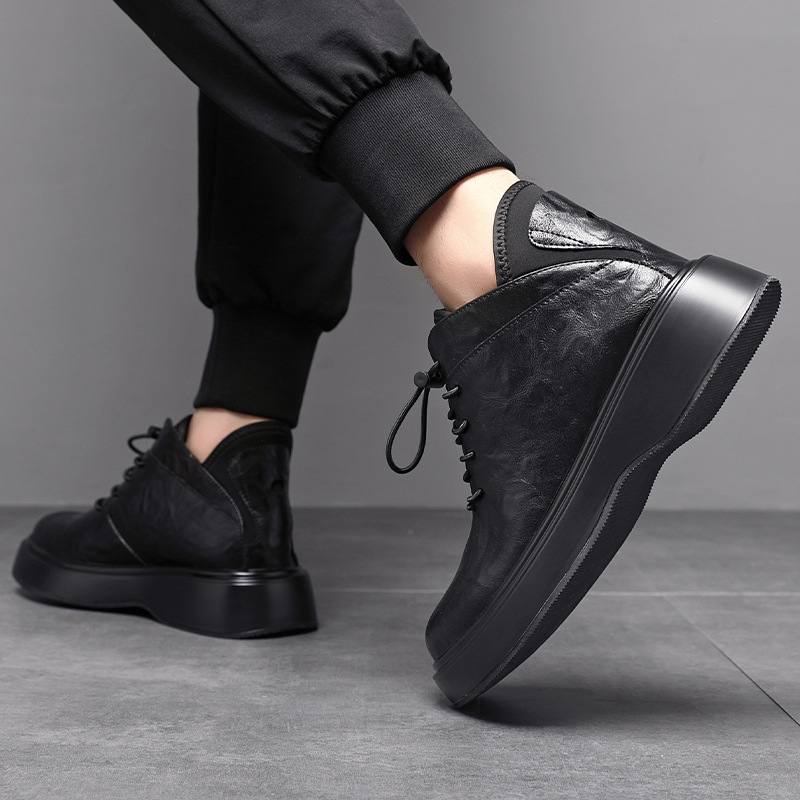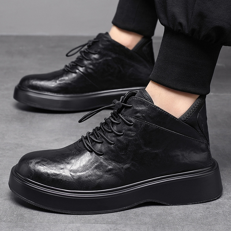 皮鞋男款秋冬季加绒保暖男鞋英伦黑色马丁靴男士商务真皮休闲鞋子