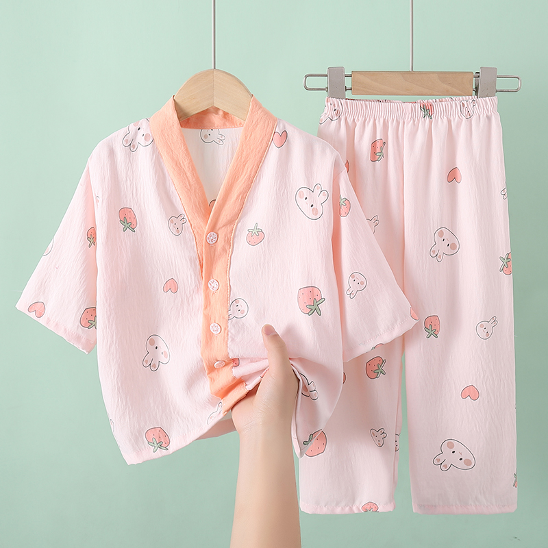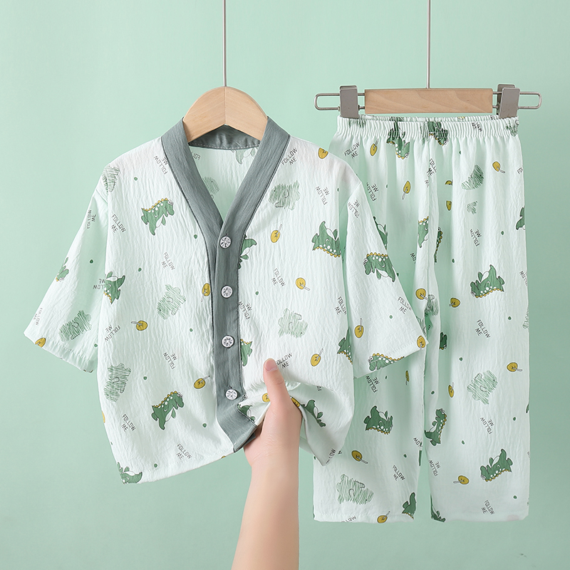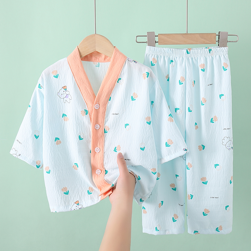 夏季儿童睡衣开衫薄款云朵棉男童女孩女童宝宝空调家居服套装新款