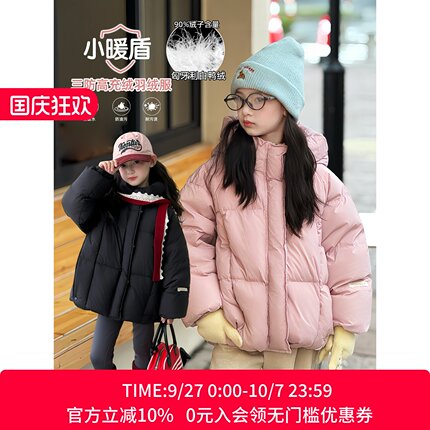 女童羽绒服2025冬季新款儿童90白鸭绒连帽外套中大童上衣