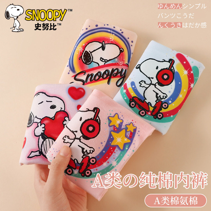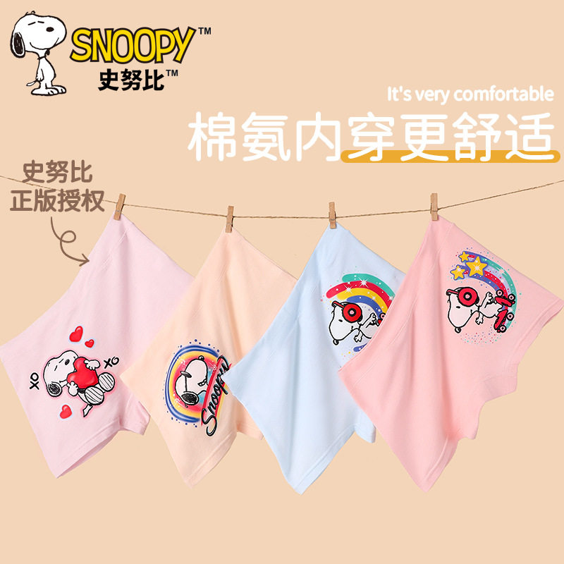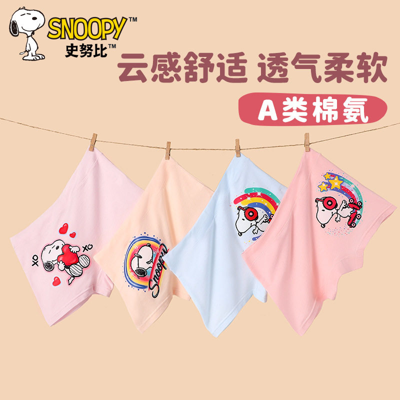 史努比女童平角短裤儿童内裤100%女宝宝发育期小学生棉