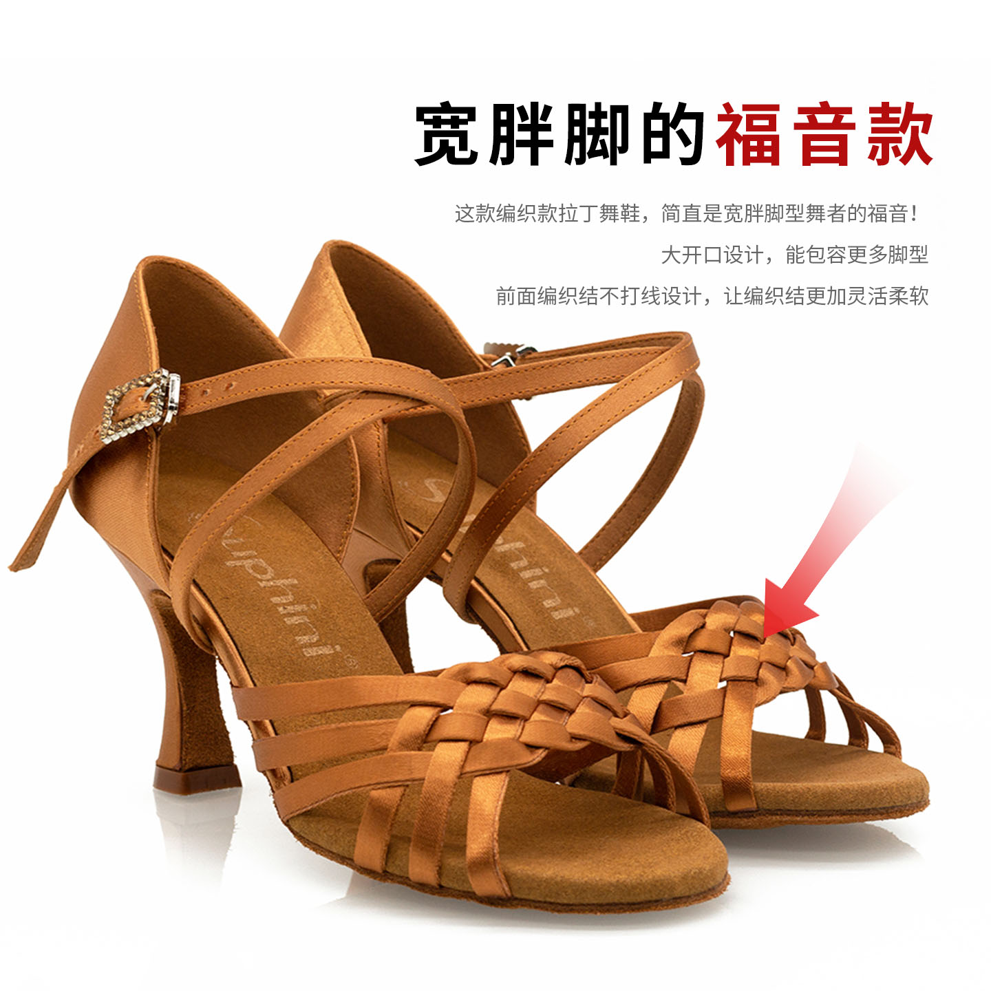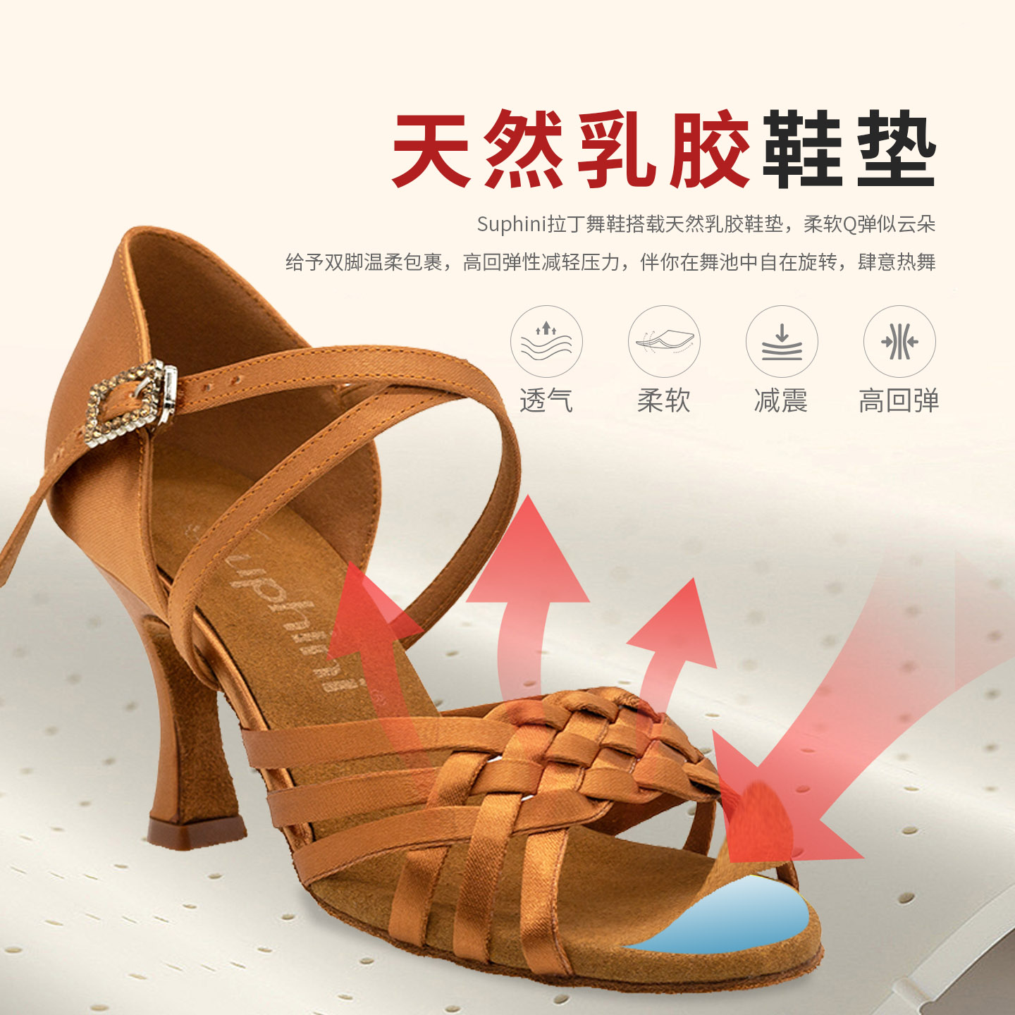 Suphini专业时尚百搭拉丁舞鞋成年女士舒适中低跟软底国标舞蹈鞋