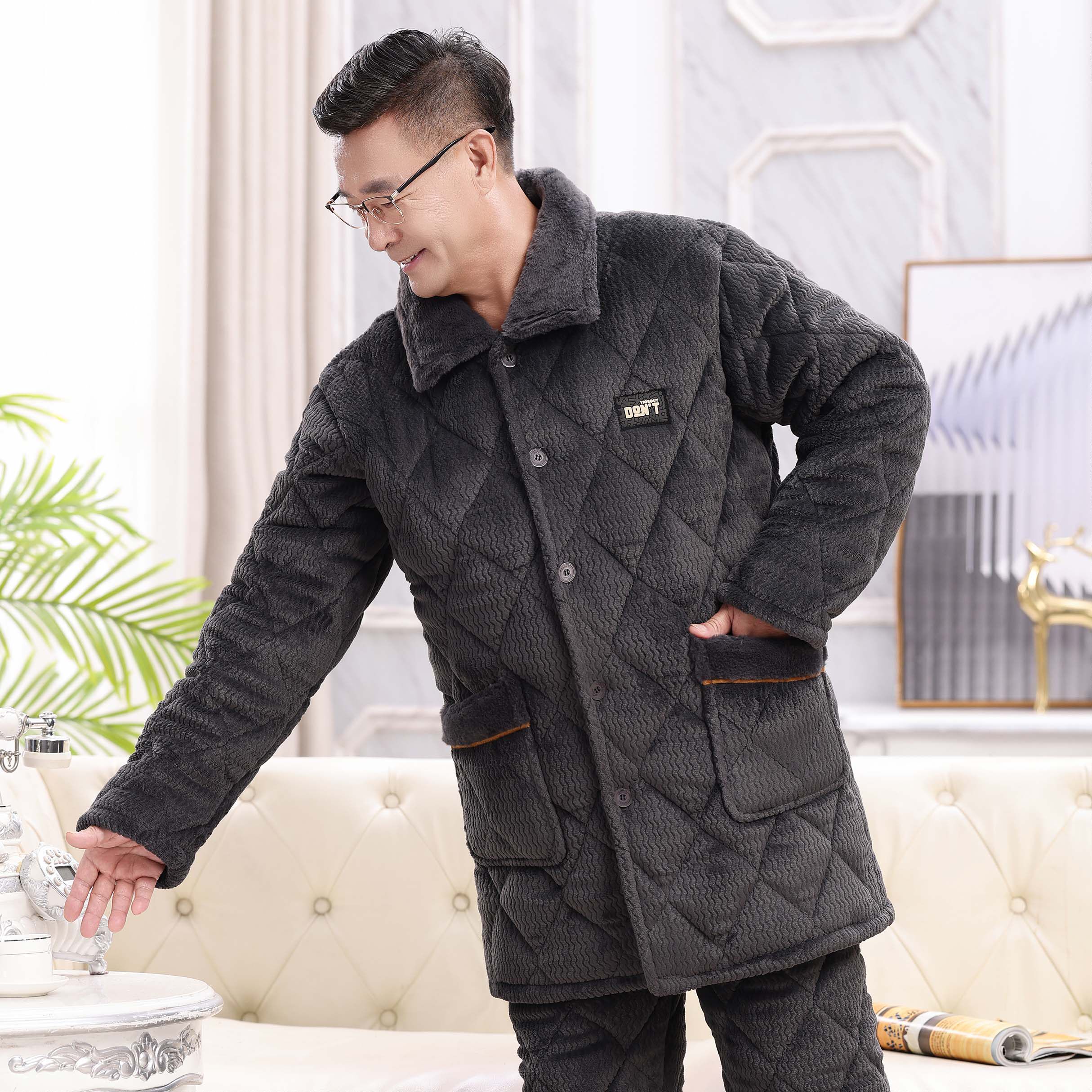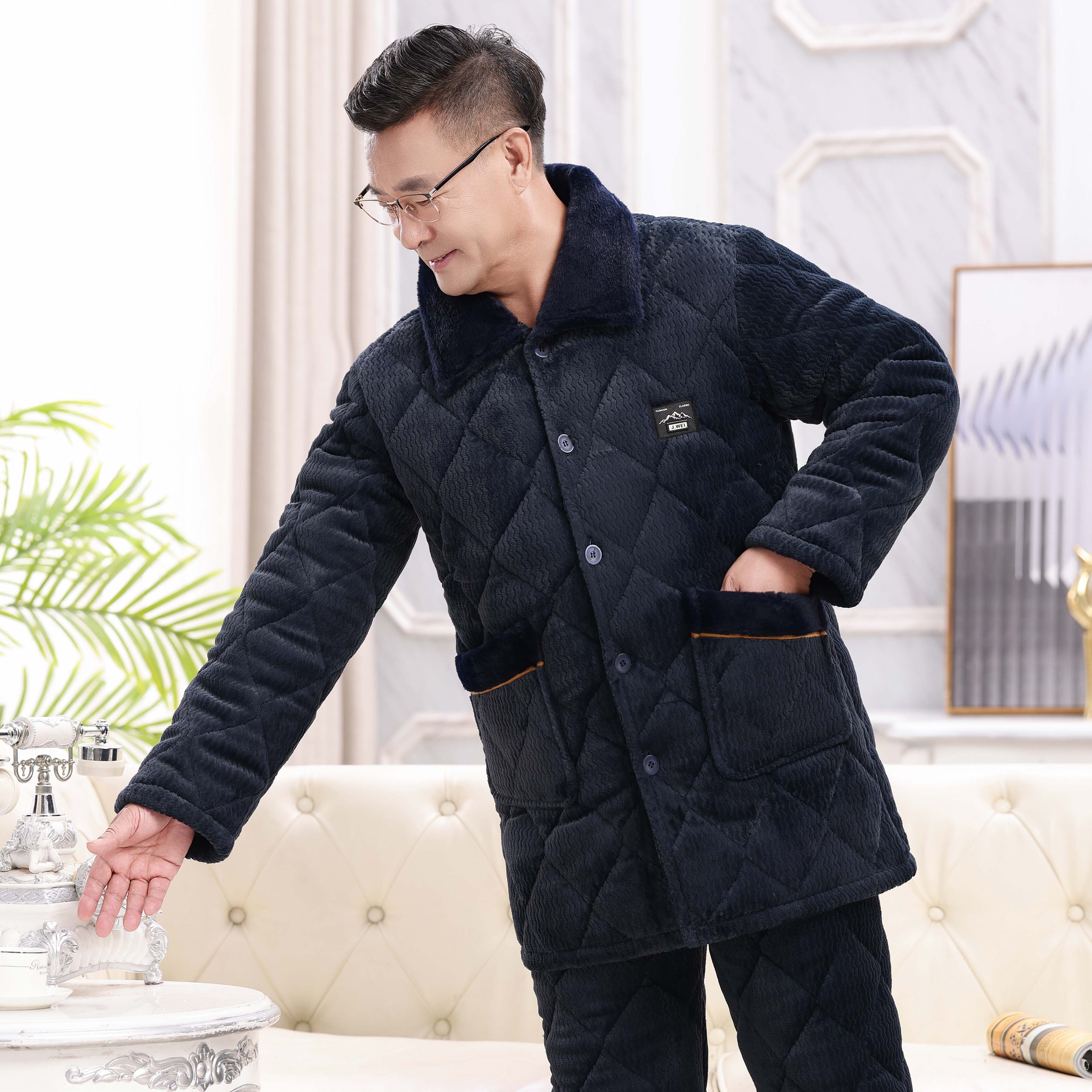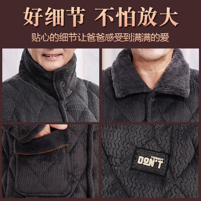 冬季加厚爸爸保暖家居服加大码老人睡衣男夹棉珊瑚绒中老年