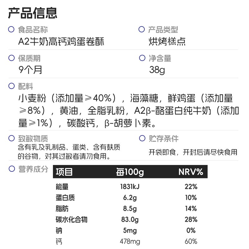 【顺买】喵小侠A2牛奶高钙鸡蛋卷儿童高钙营养零食