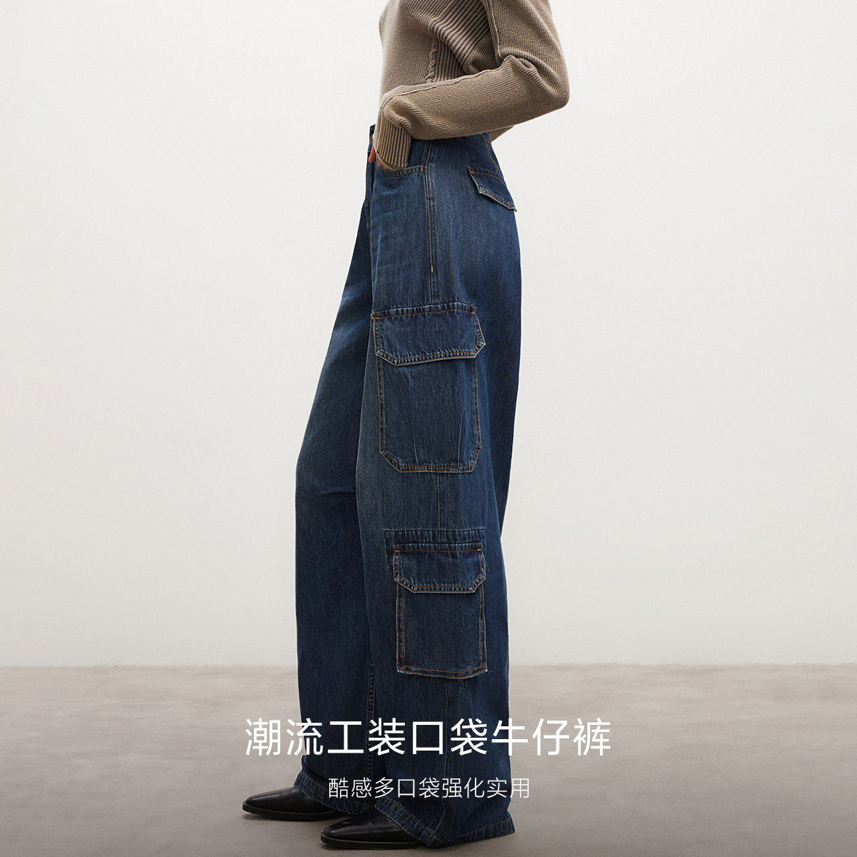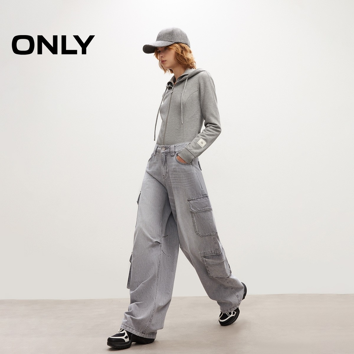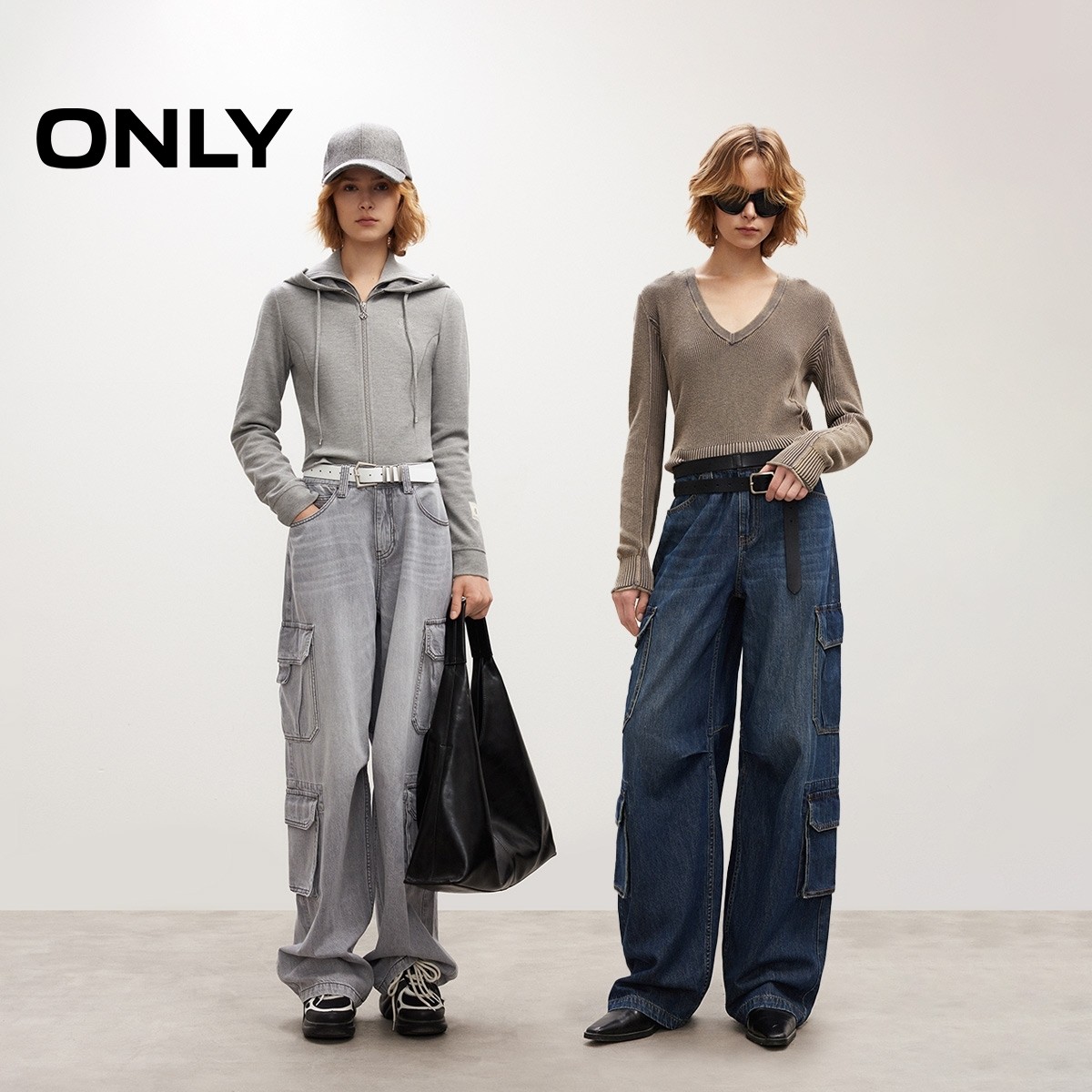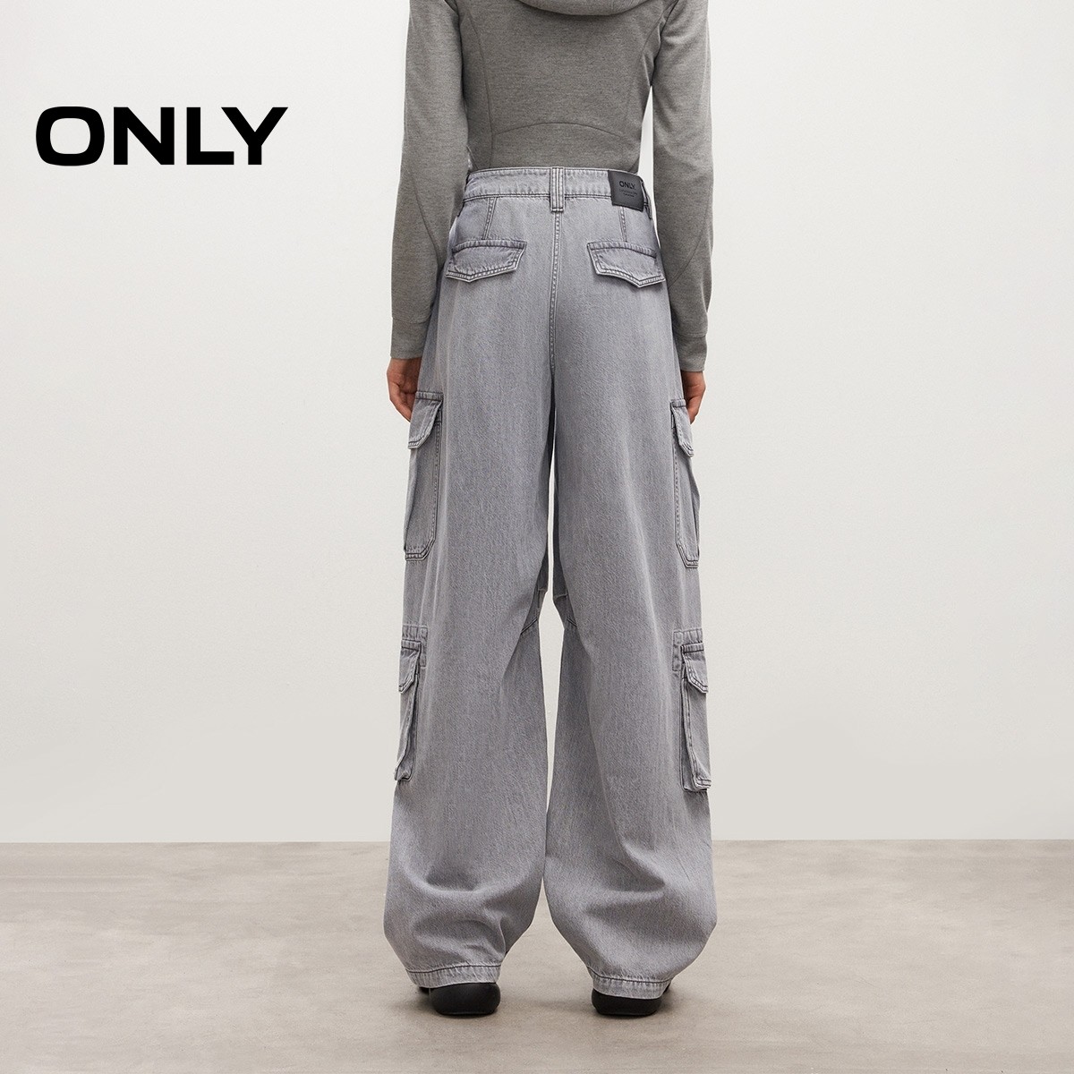 ONLY2025冬新款做旧水洗多口袋宽松工装阔腿裤牛仔裤女
