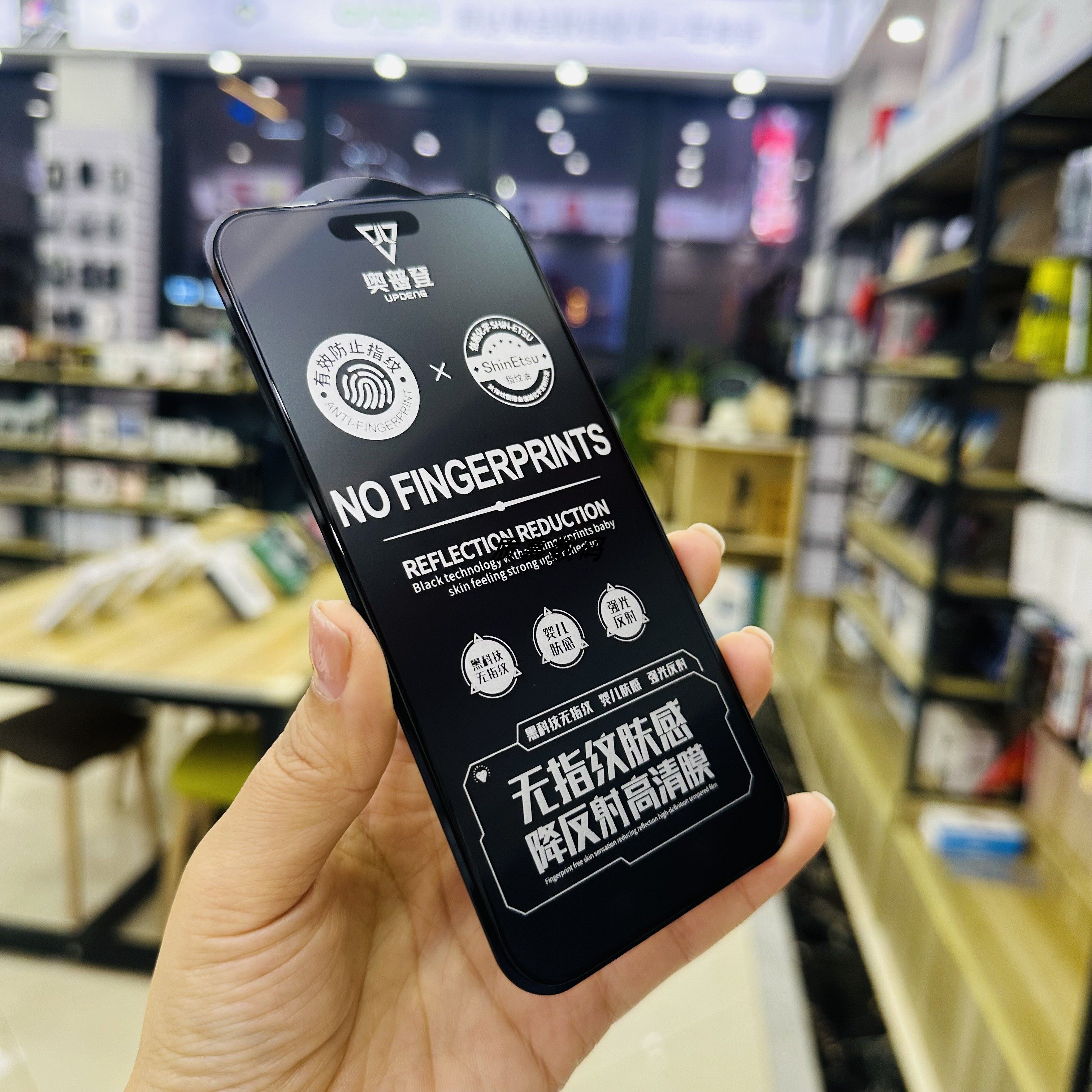 奥普登无指纹钢化膜适用于15Promax 14plus 13Pro手机防摔全包防尘防爆玻璃膜防摔降反射肤感磨砂膜