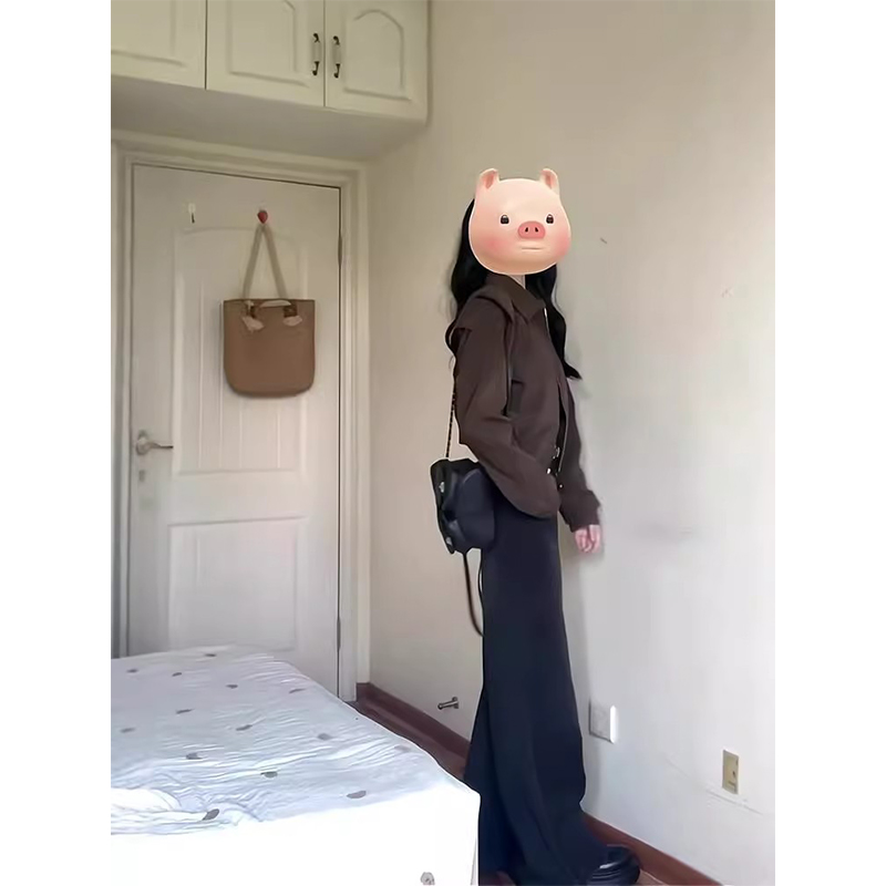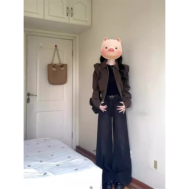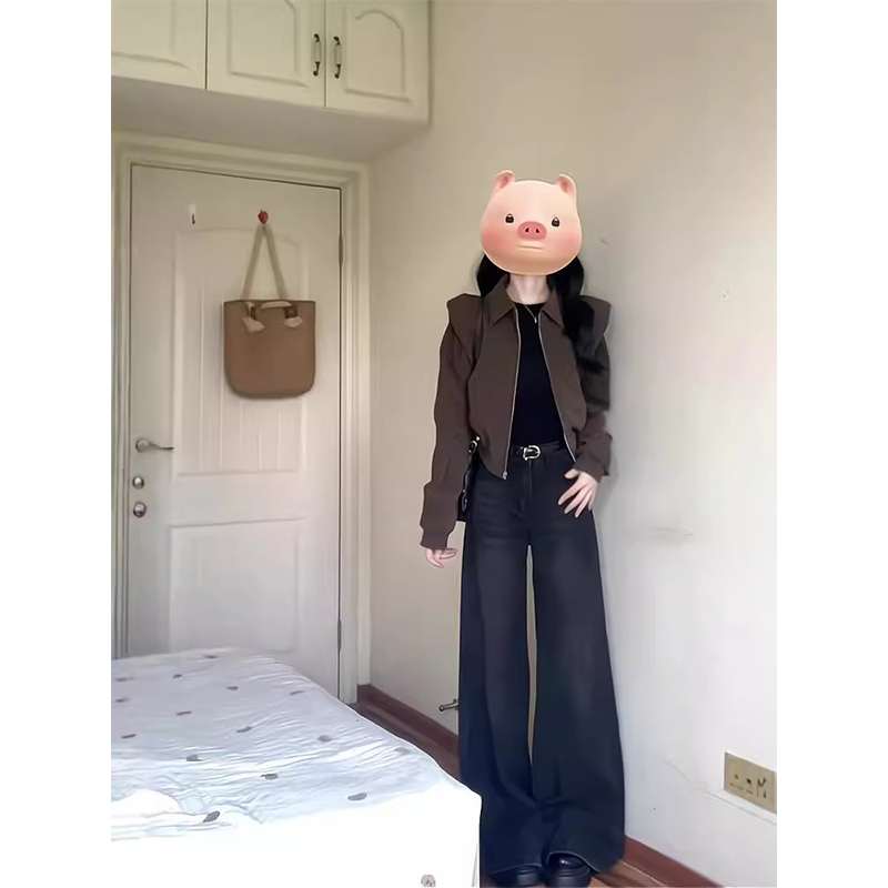 深棕短款垫肩翻领夹克外套女春秋港风覆古美拉德穿搭慵懒棒球服
