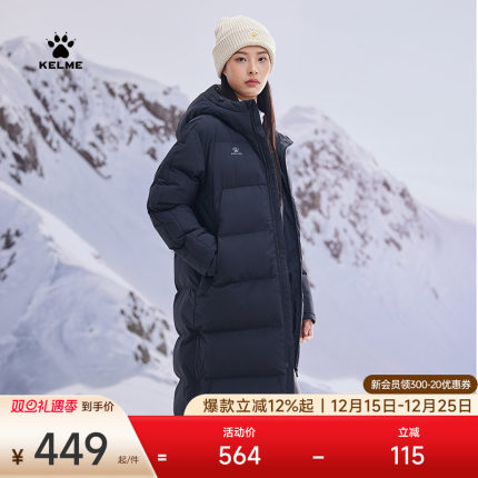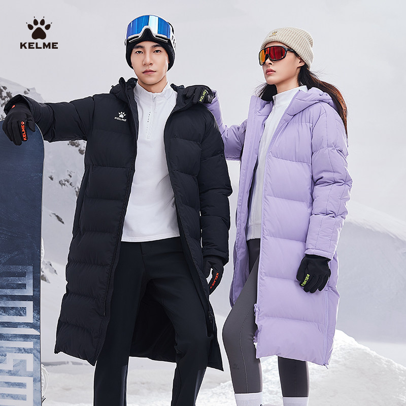 KELME卡尔美长款连帽棉服女士冬季足球训练运动棉衣保暖加厚外套