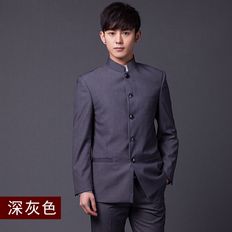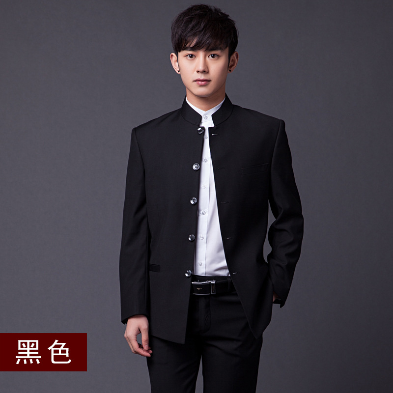 男士中华立领西服套装修身中山装青年四季新款演出服装