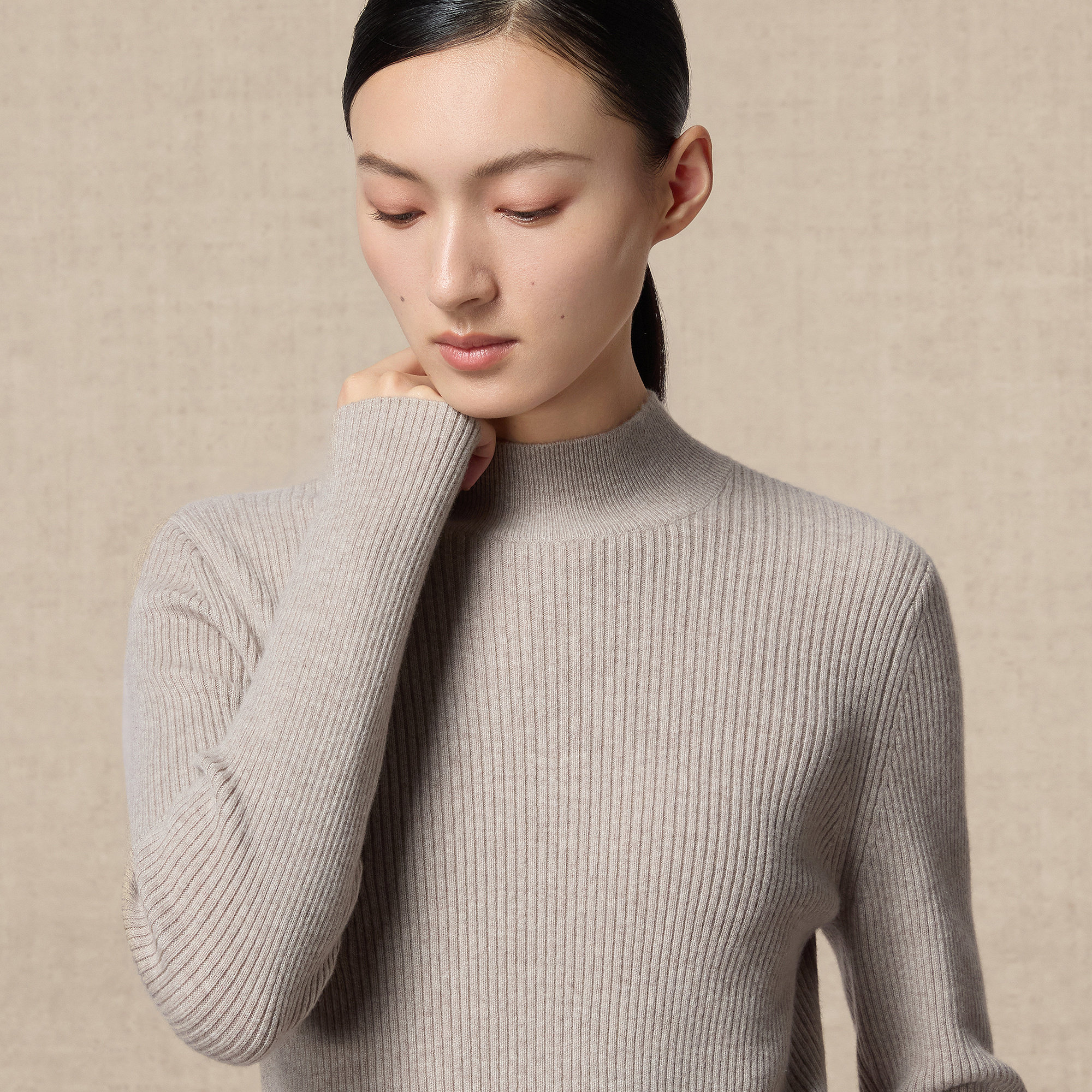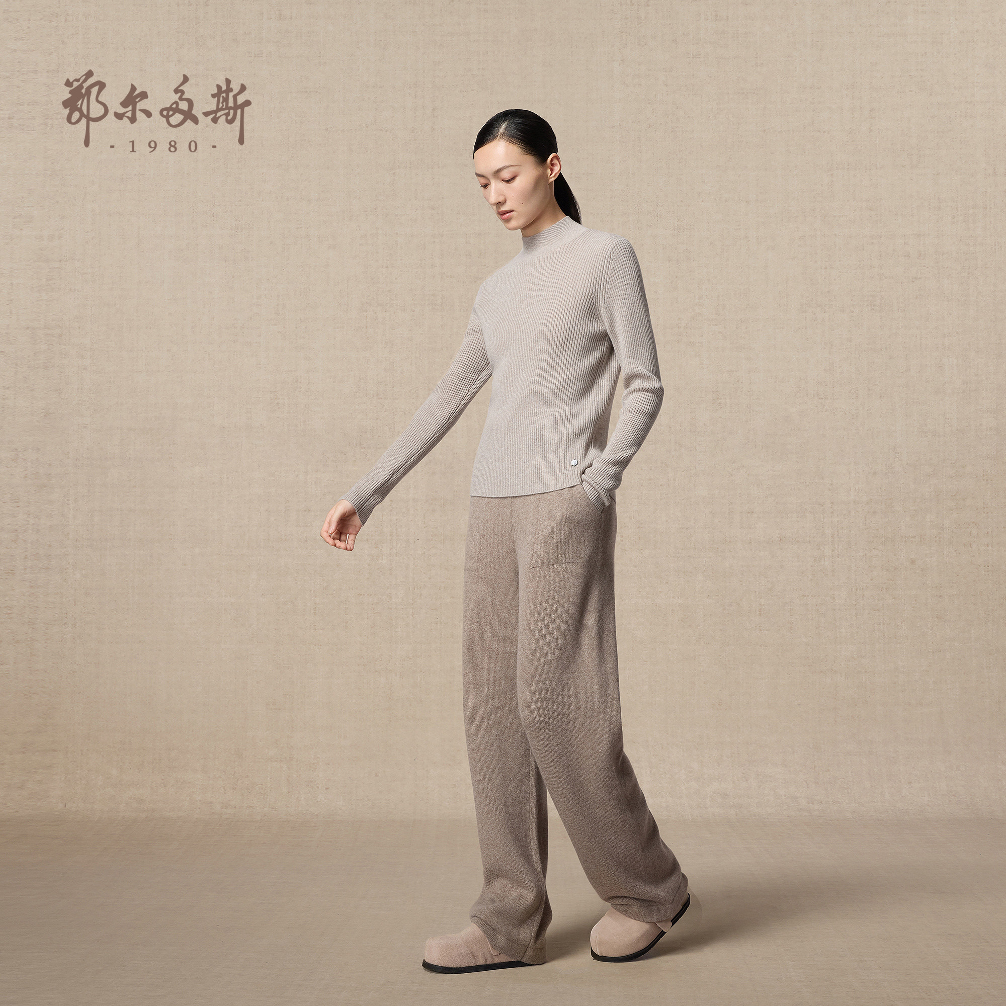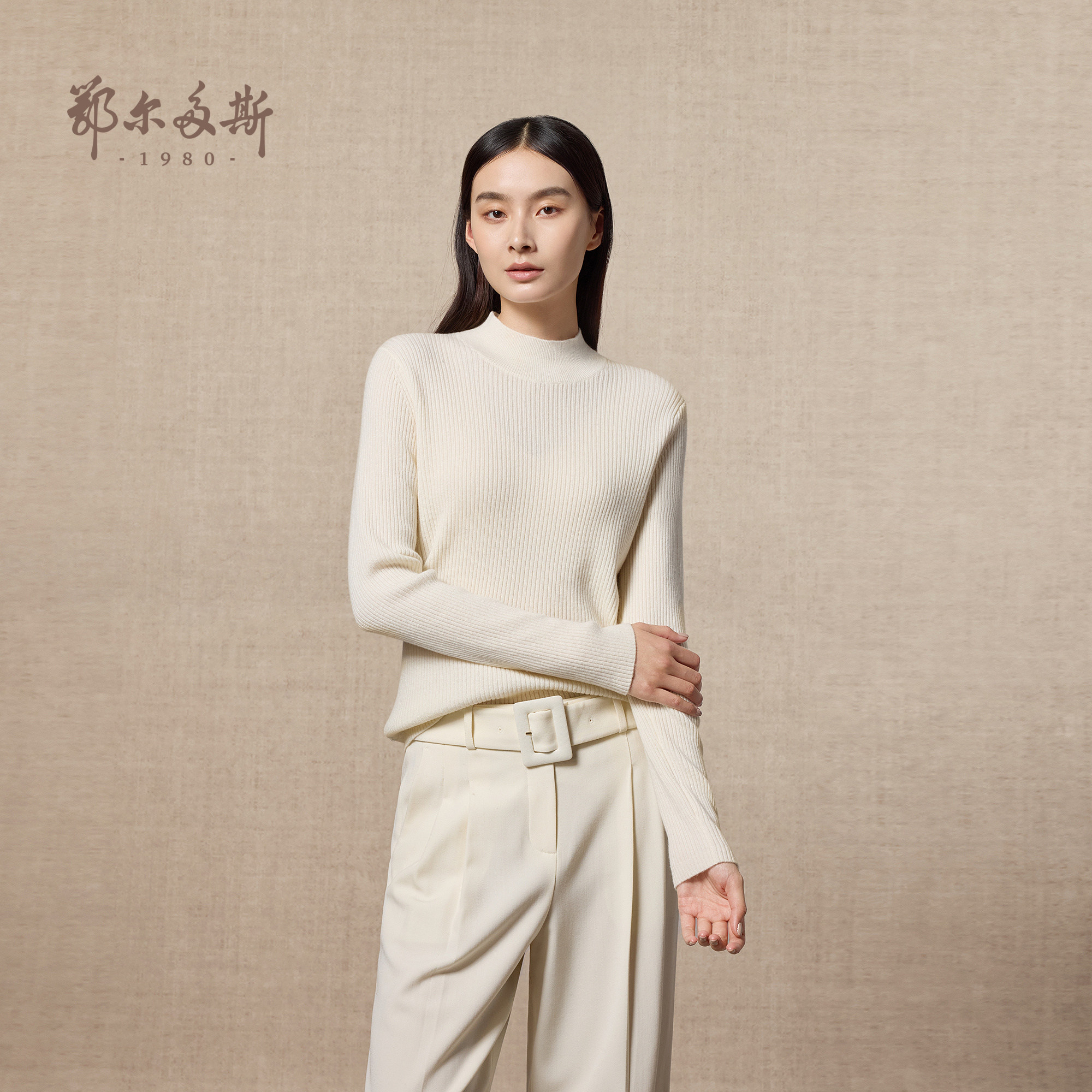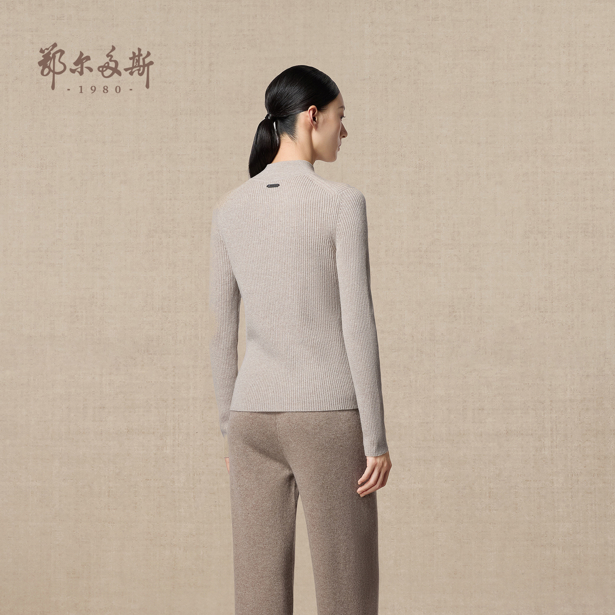 鄂尔多斯1980 女装半高领抽条羊绒衫秋冬保暖修身纯色针织打底衫