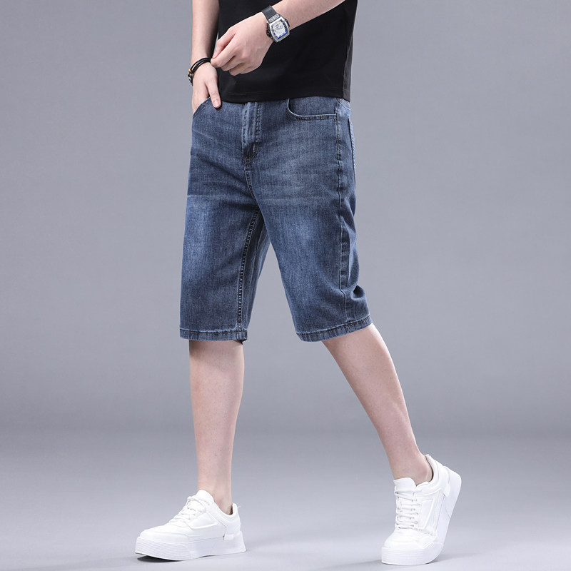 七分牛仔短裤男弹力休闲宽松直筒7分裤夏季薄款牛仔裤冰丝中裤男