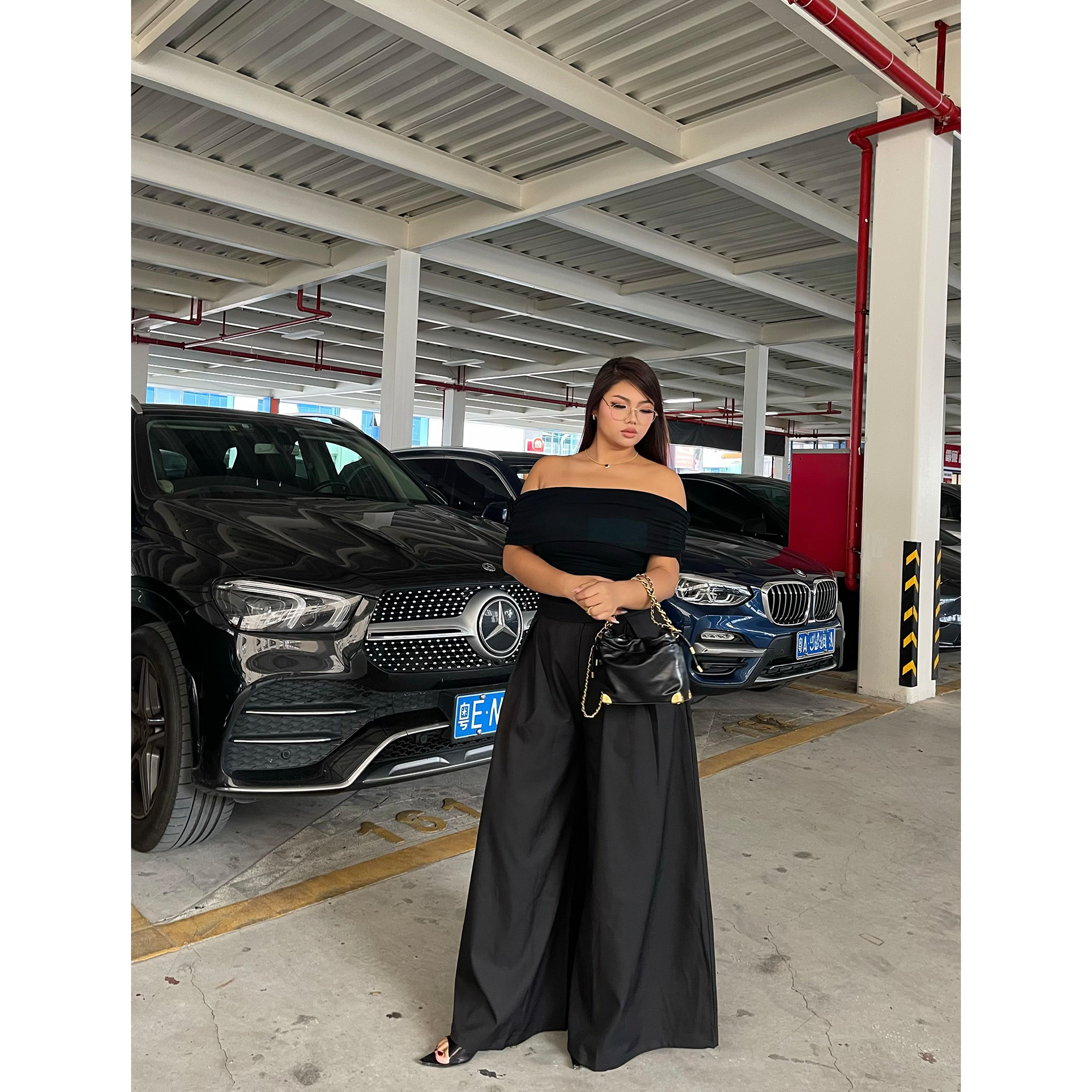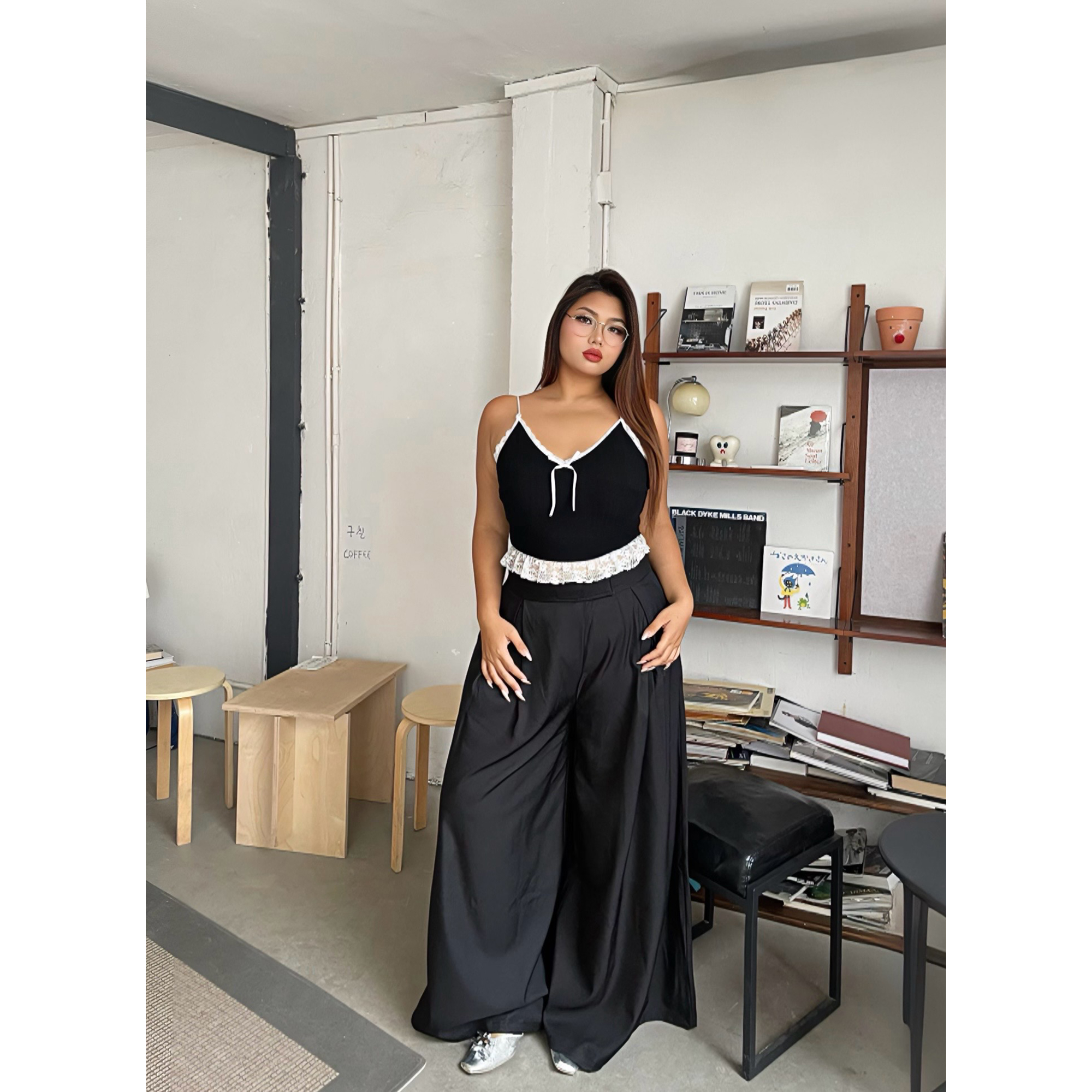 美式复古阔腿西装裤直筒拖地裤