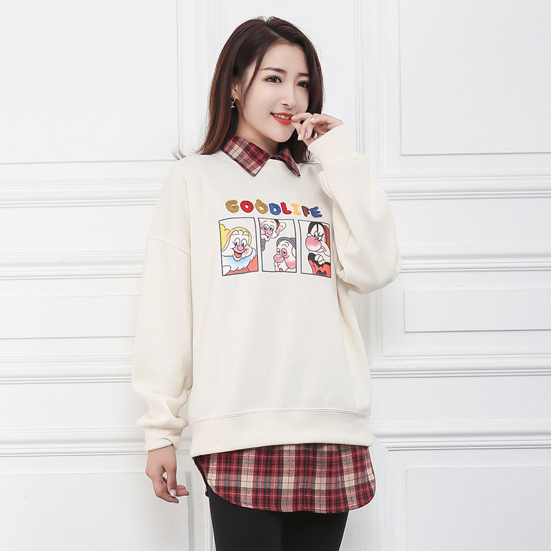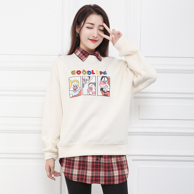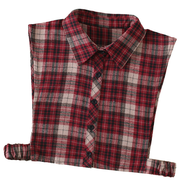 新款春秋冬季百搭女士红色格子衬衫假领子毛衣卫衣装饰尖圆立衣领