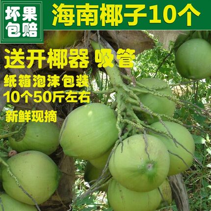 海南椰子椰青10个带皮椰子文昌三亚新鲜水果椰子现摘嫩大青椰子