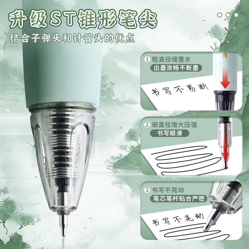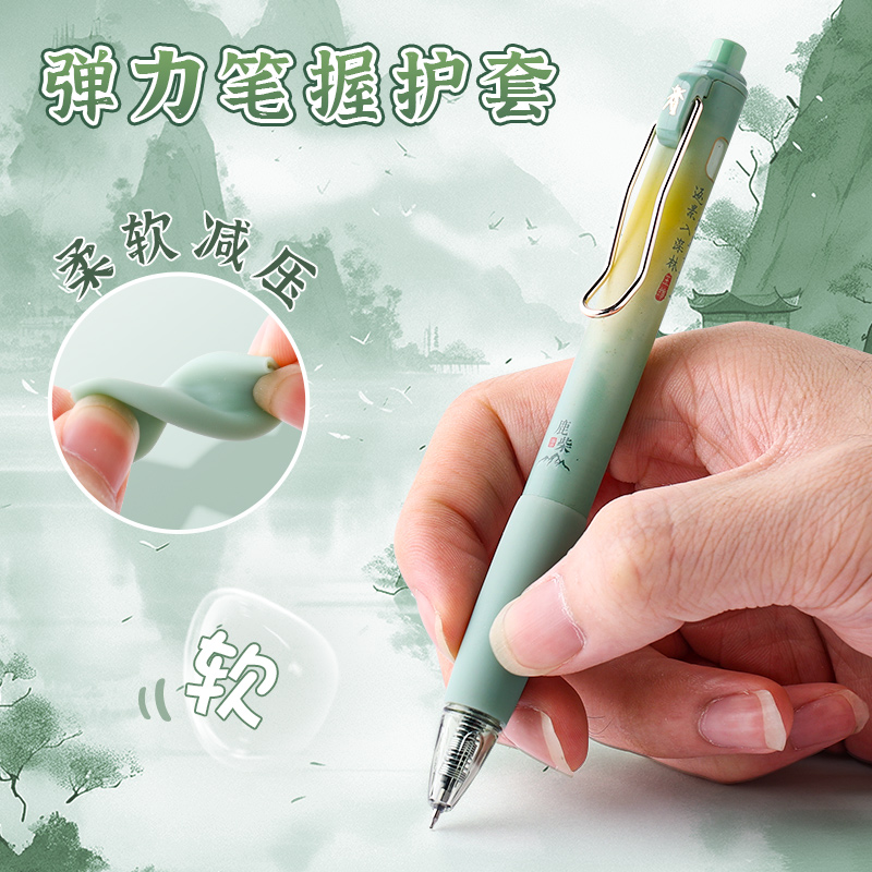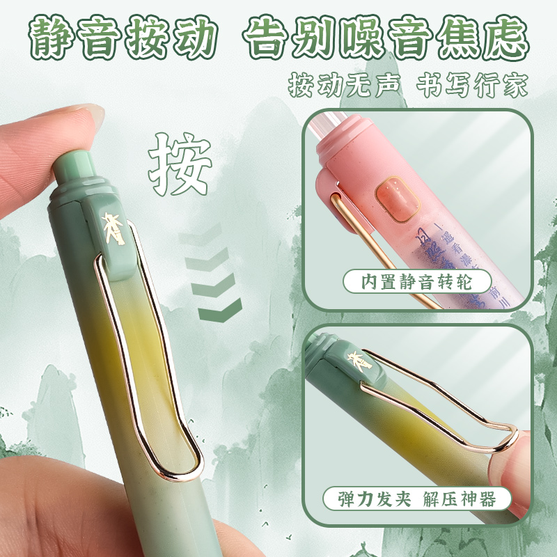 晨光大美之诗静音按动中性笔高颜值刷题笔学生用0.5st笔头黑笔速干办公中国风签字笔小分贝碳素考试专用K3319