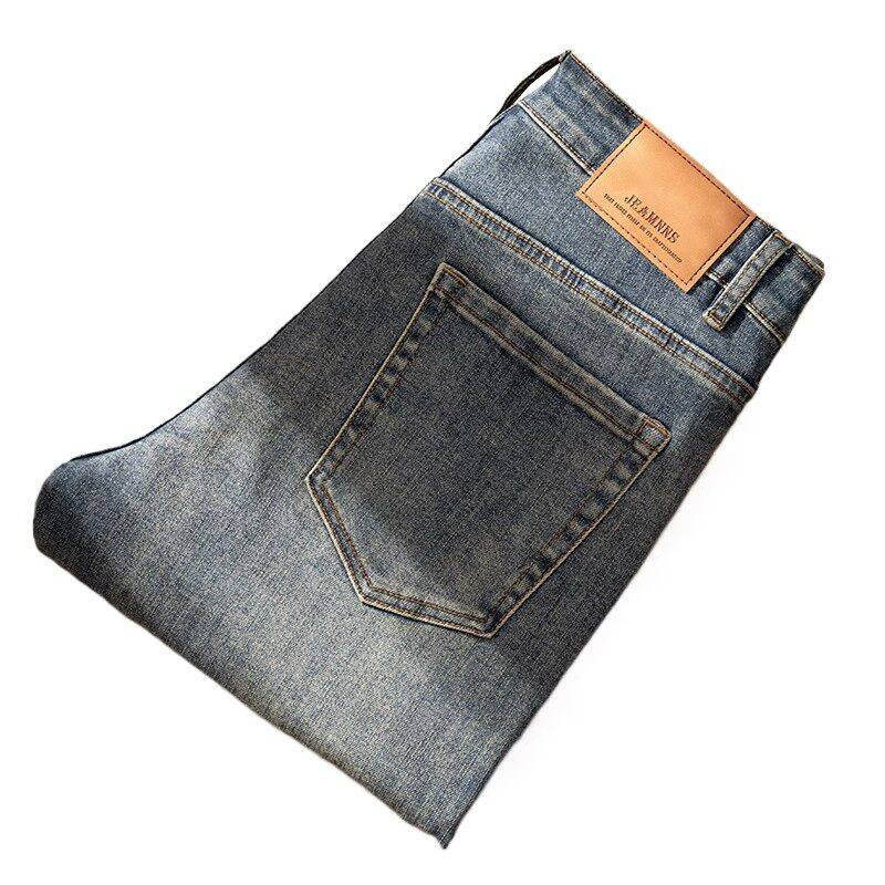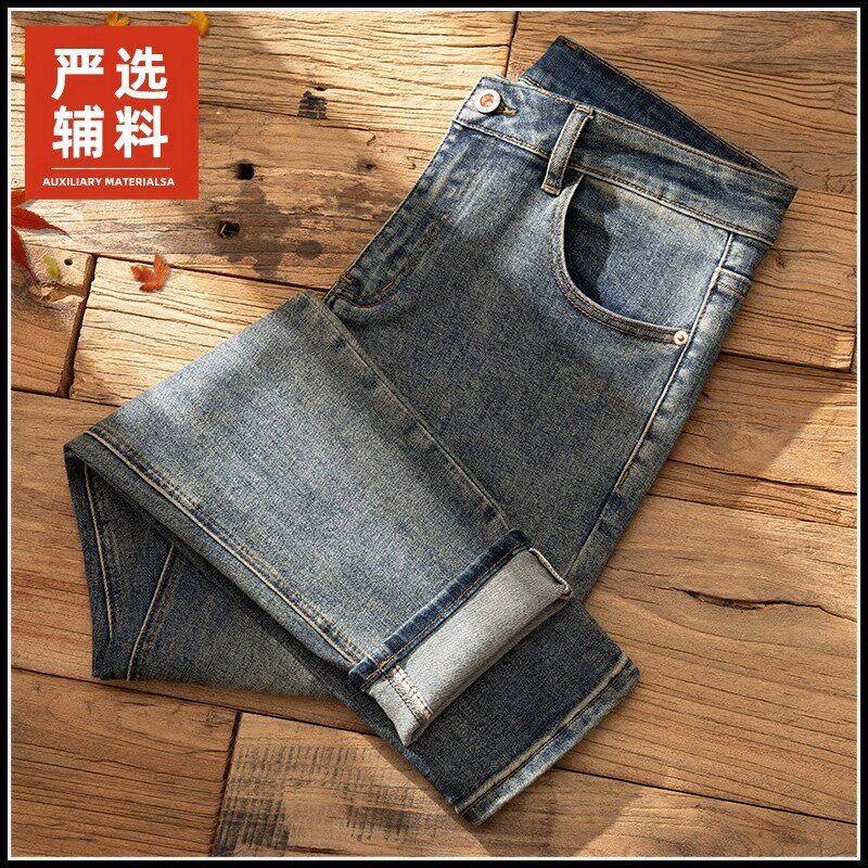 Yishion以纯官方时尚正品复古水洗牛仔裤男冬季加绒修身弹力长裤