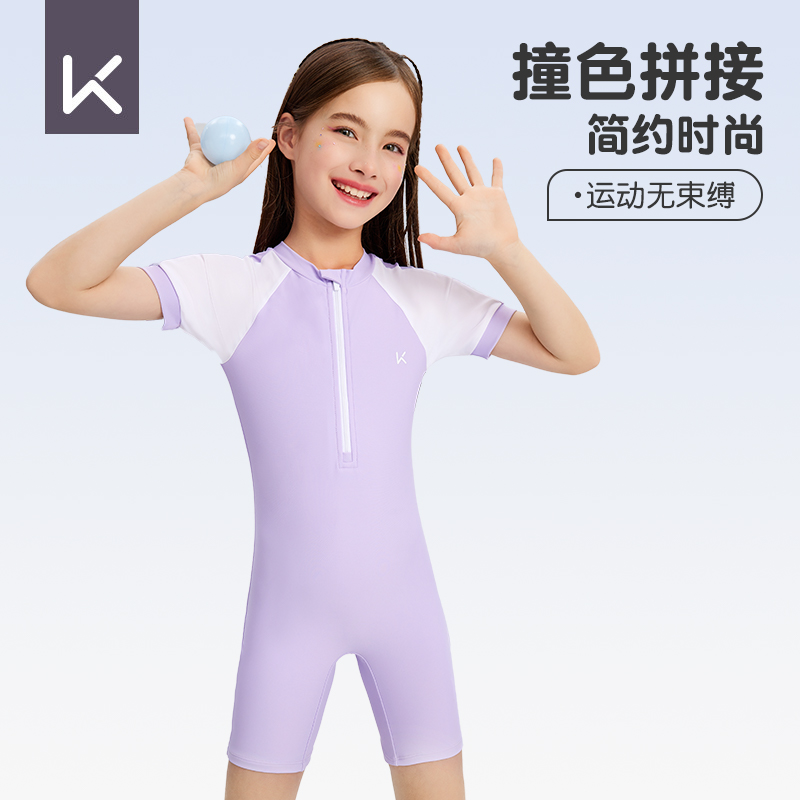 Keep儿童泳衣女童2025新款中大童连体防晒专业训练女孩游泳衣夏季