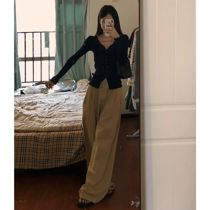 黑色v领长袖针织开衫女春秋季薄款针织衫内搭打底衫修身短款上衣