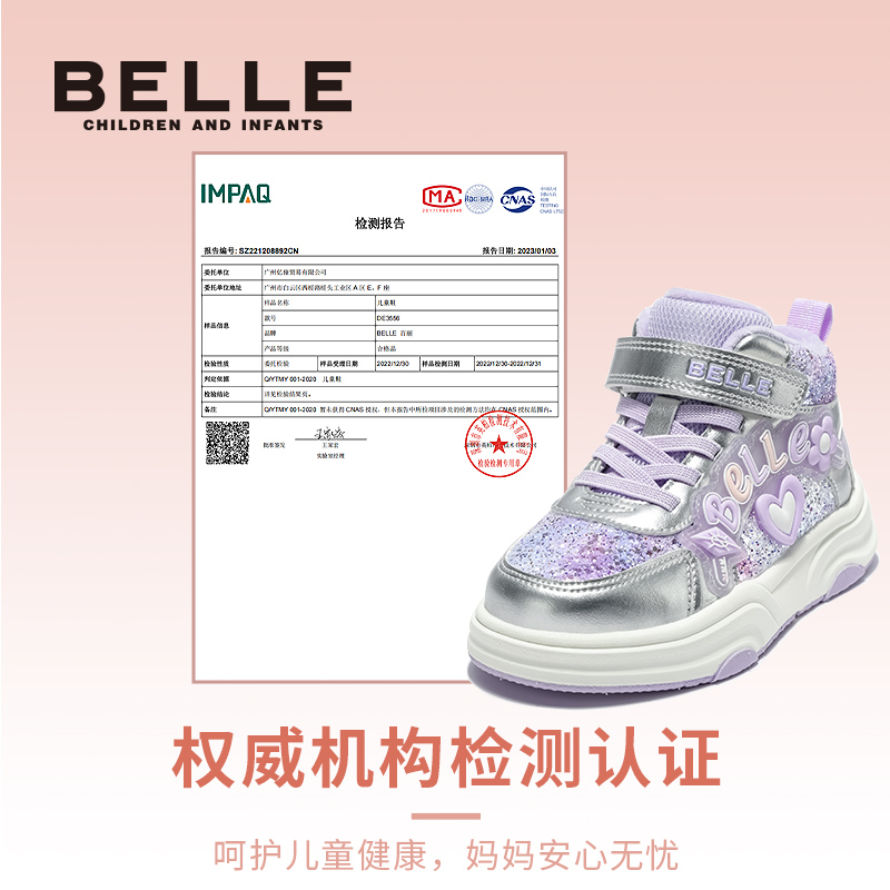 百丽童鞋女童加绒板鞋冬季新款儿童运动鞋保暖高帮鞋子中大童二棉