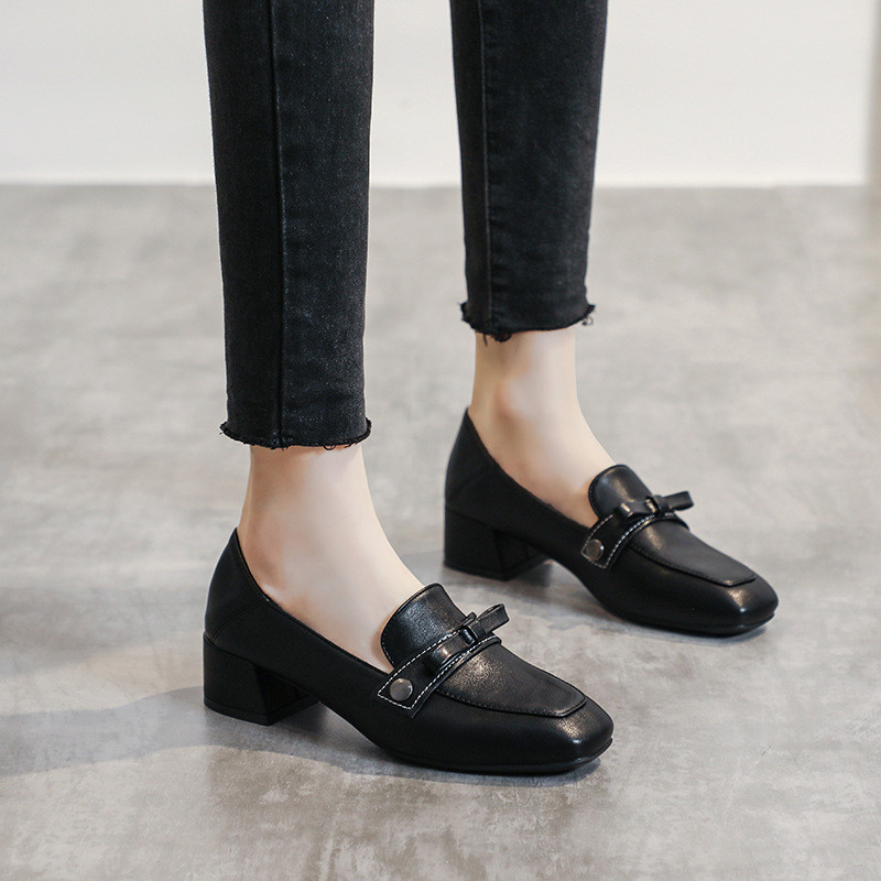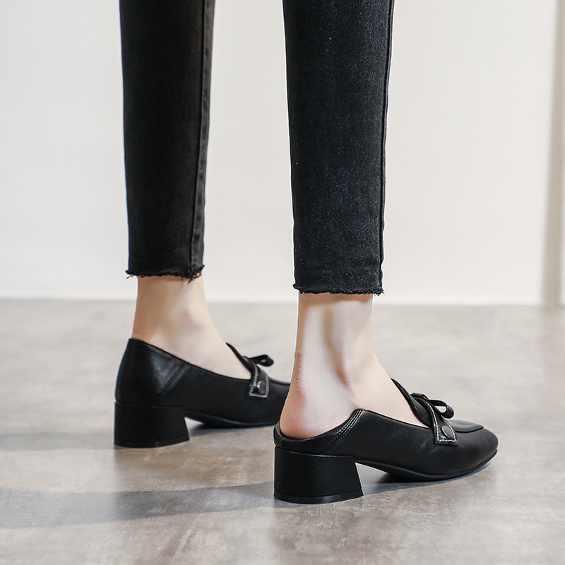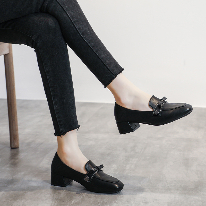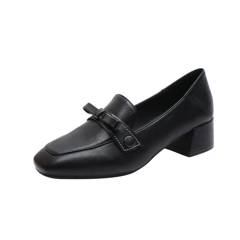 25新款真皮小皮鞋女鞋2025秋季新款粗跟英伦风高跟黑色乐福舒适工