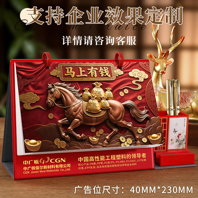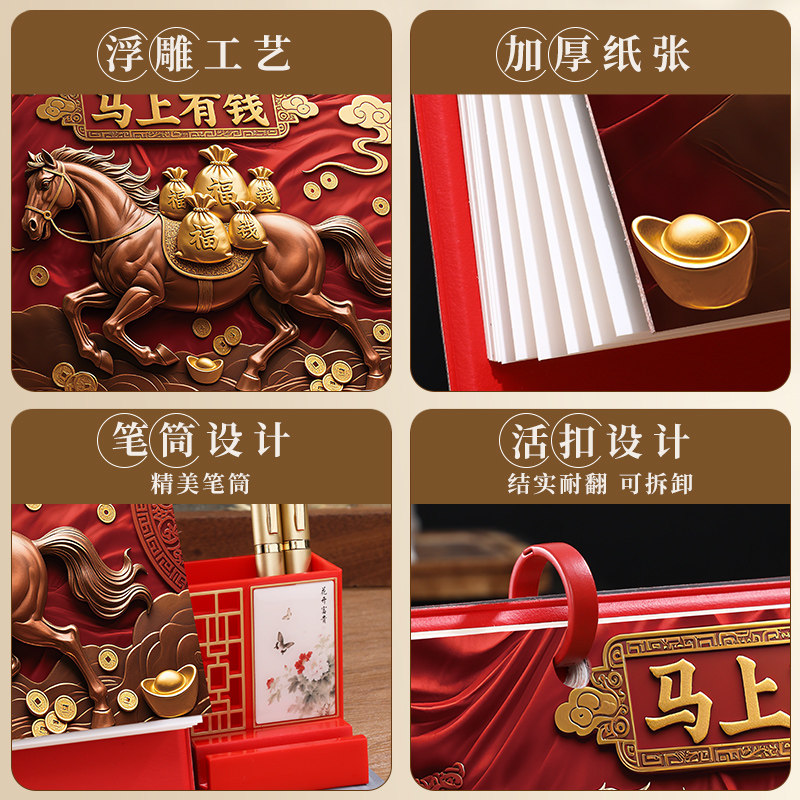 2026年台历新款浮雕式马年中国风日历礼盒装创意桌面商务摆件办公工作翻页月历记事计划企业广告定制专版logo