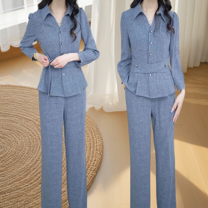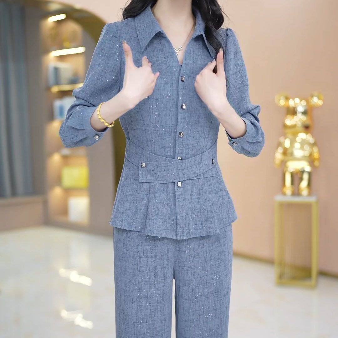 时尚高级两件套女春秋新款名媛时尚减龄妈妈气质直筒微喇裤套装潮