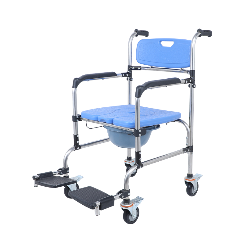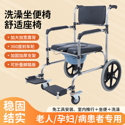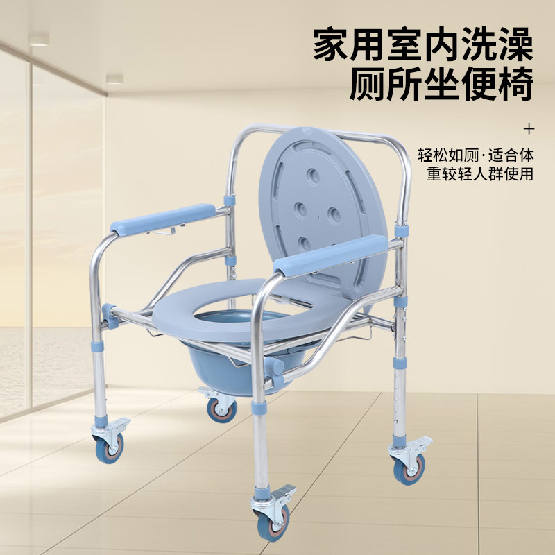 老人可折叠可移动带轮坐便椅移动马桶加粗加厚不锈钢洗澡坐便椅