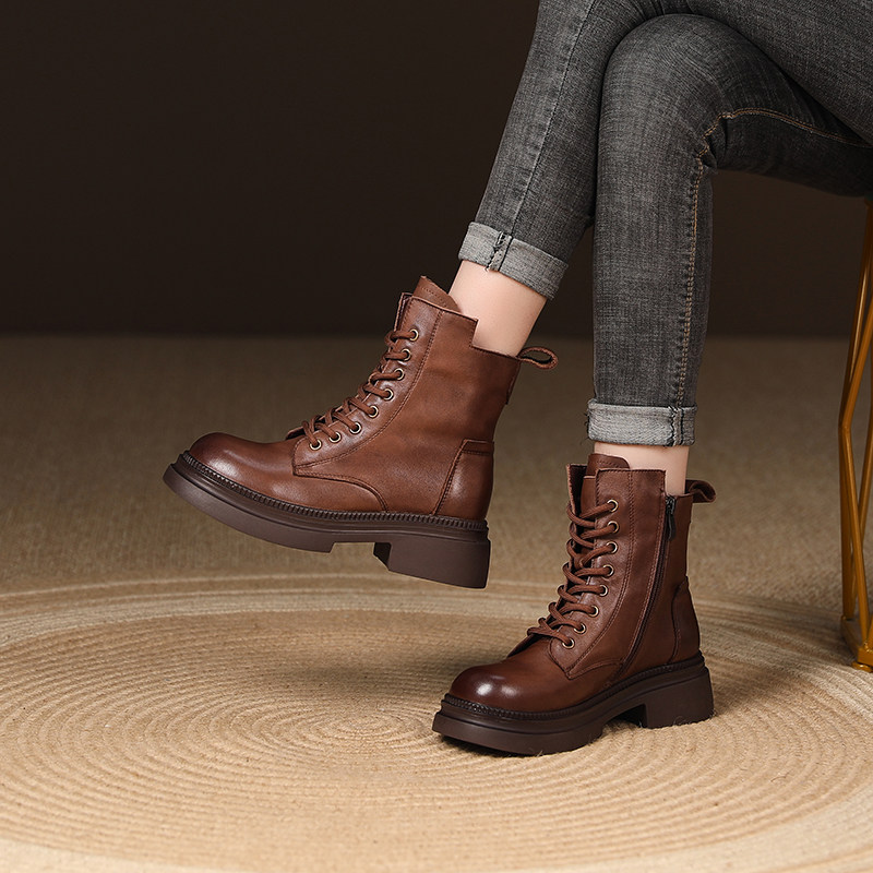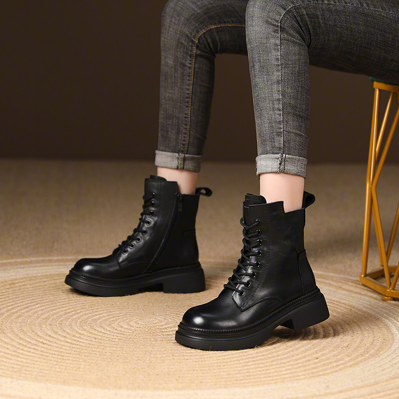 真皮短靴女英伦风马丁靴2025秋冬新款今年流行的爆款复古厚底女款