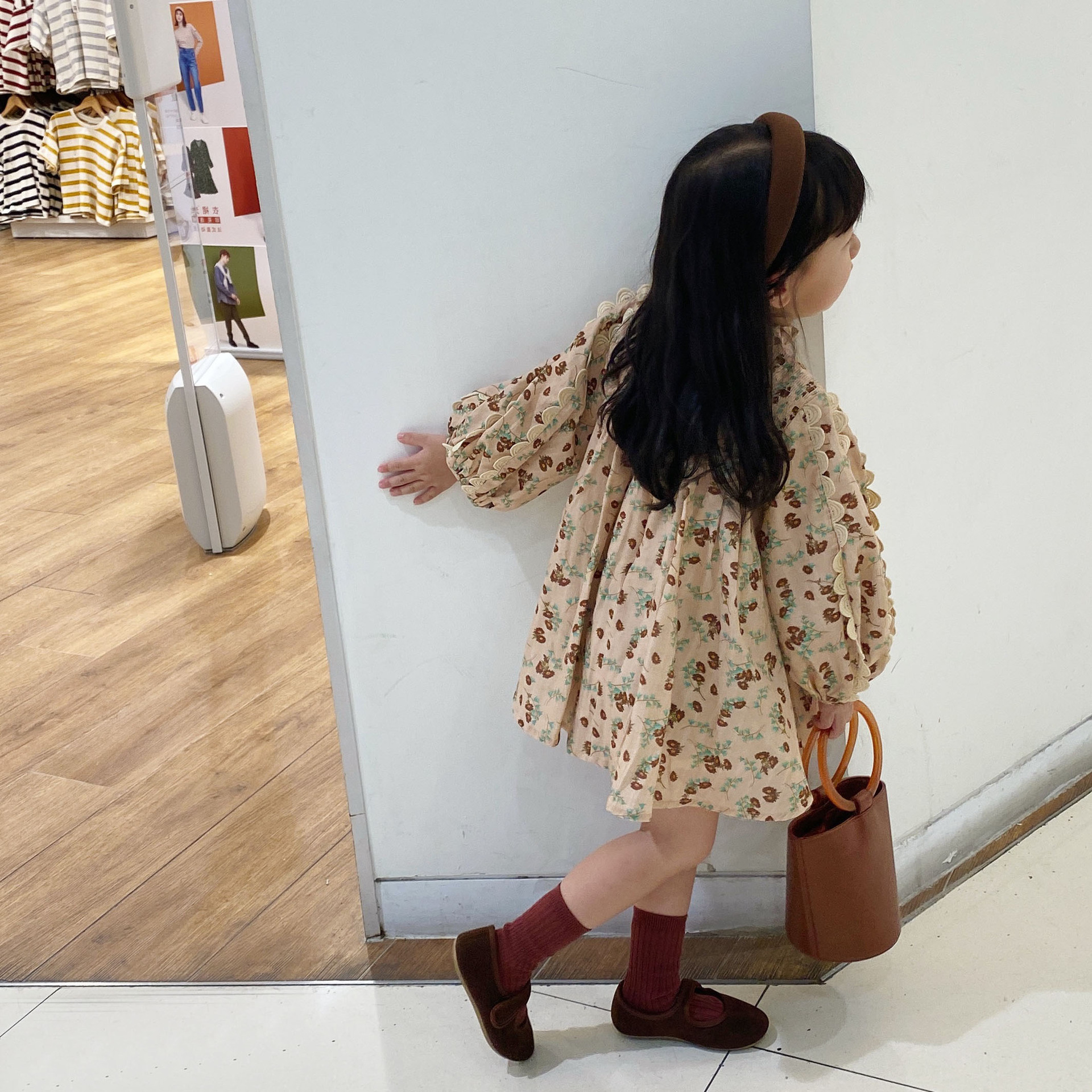 女童碎花连衣裙2025秋季新款韩版儿童重工花边袖公主裙女宝宝裙子