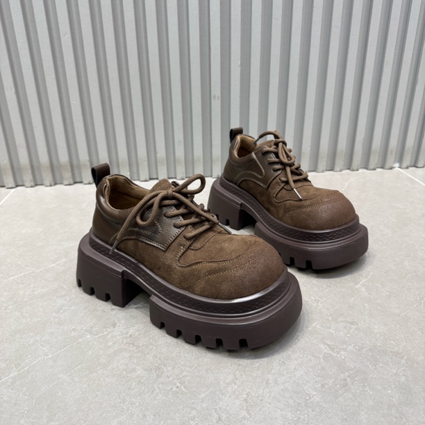 欧货2025新款真皮复古系带乐福鞋圆头松糕厚底增高小皮鞋英伦女鞋