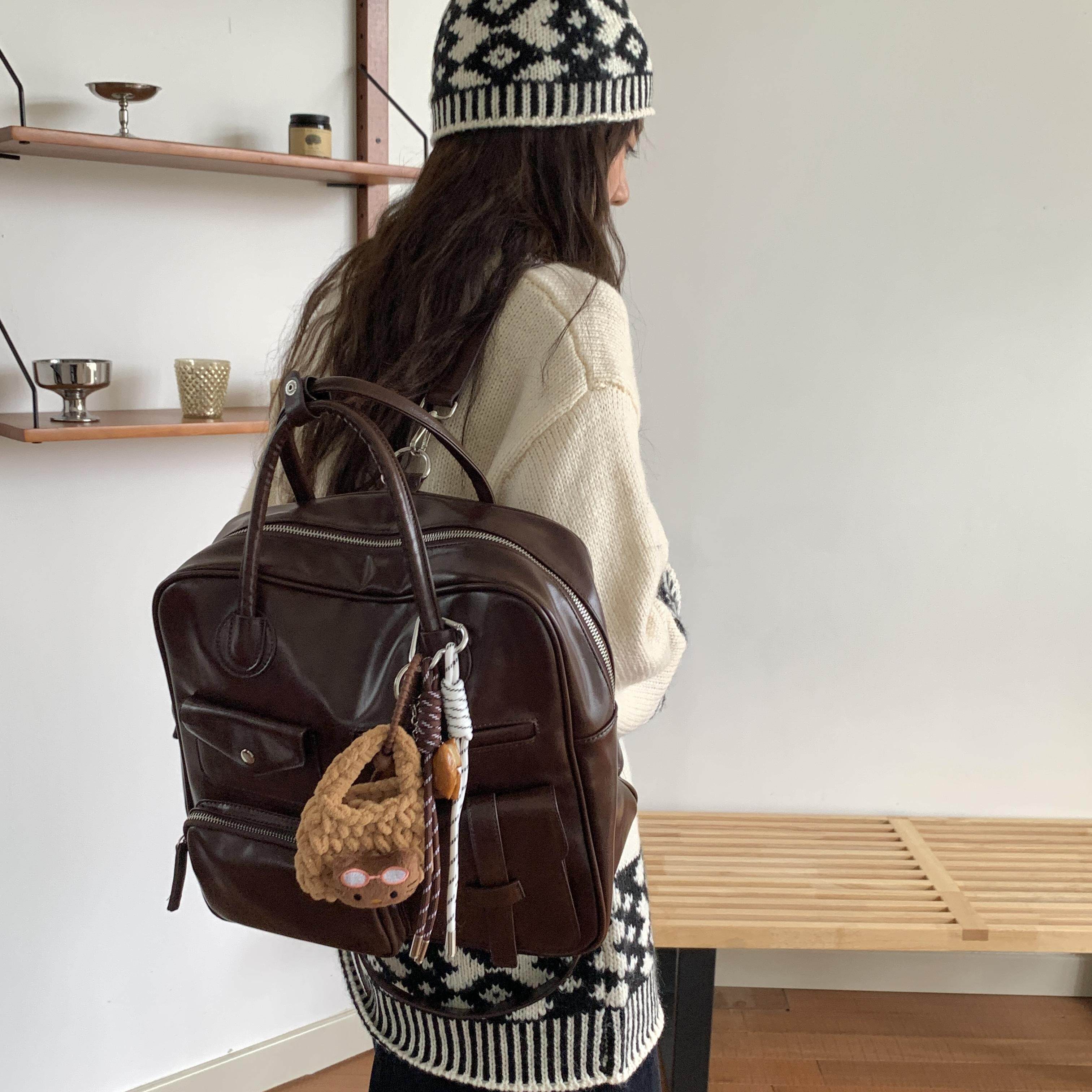 肥肥自制秋冬新款大容量女双肩包