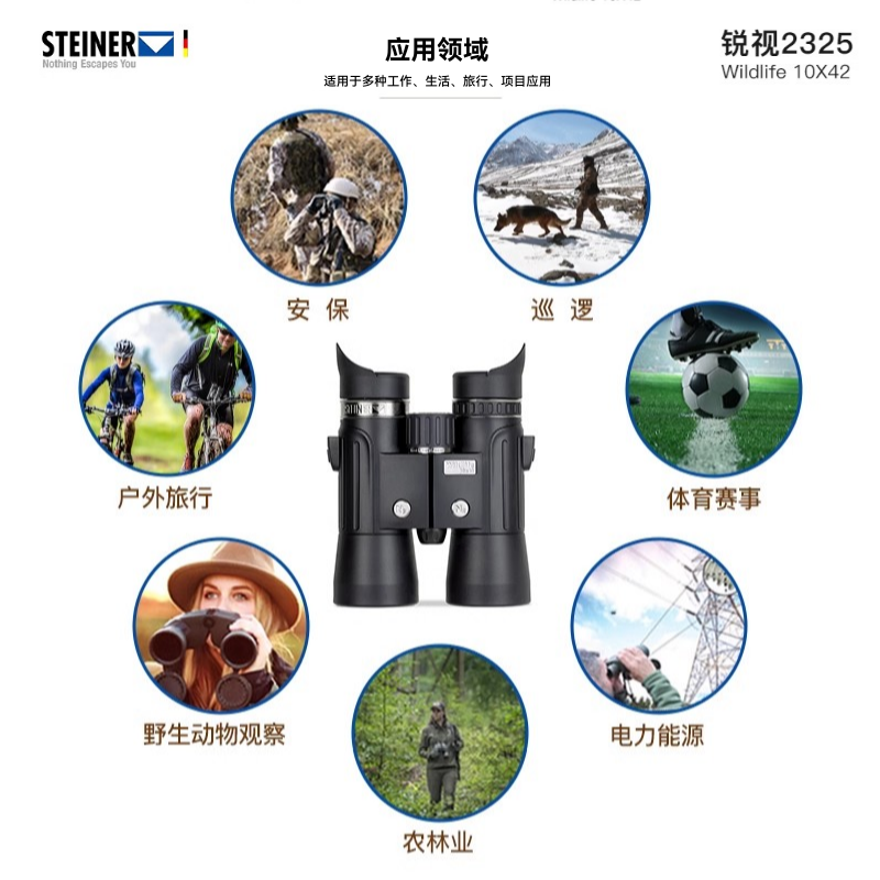 德国 STEINER视得乐 锐视8/10x42 高清夜视微光专业级观鸟望远镜