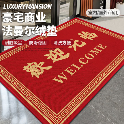 欢迎光临商用迎宾地垫红色喜庆脚垫店铺商铺进店门口定制发财地毯