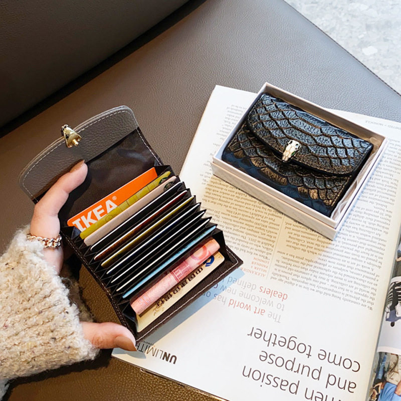 2025新款卡包女式小巧精致蛇头牛皮鳄鱼纹多卡位风琴名片证件卡夹