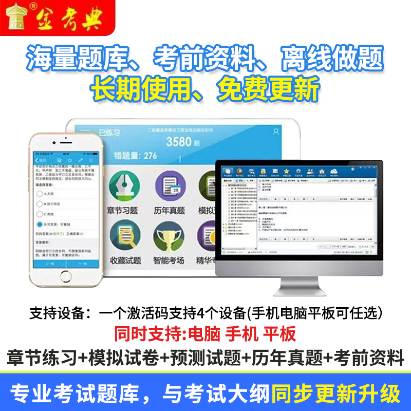 2026金考典激活码一建二建建造师监理工程师题库软件真题模拟正版