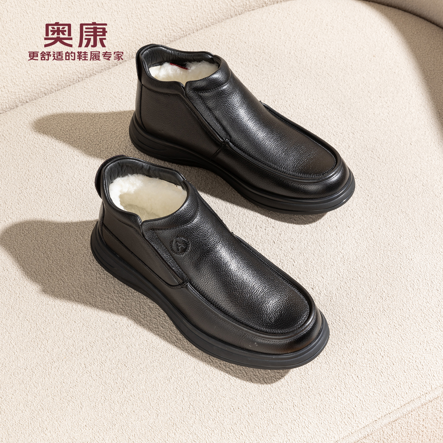 奥康 2025冬季新款男鞋靴子加绒保暖时装靴舒软中帮爸爸鞋马丁靴