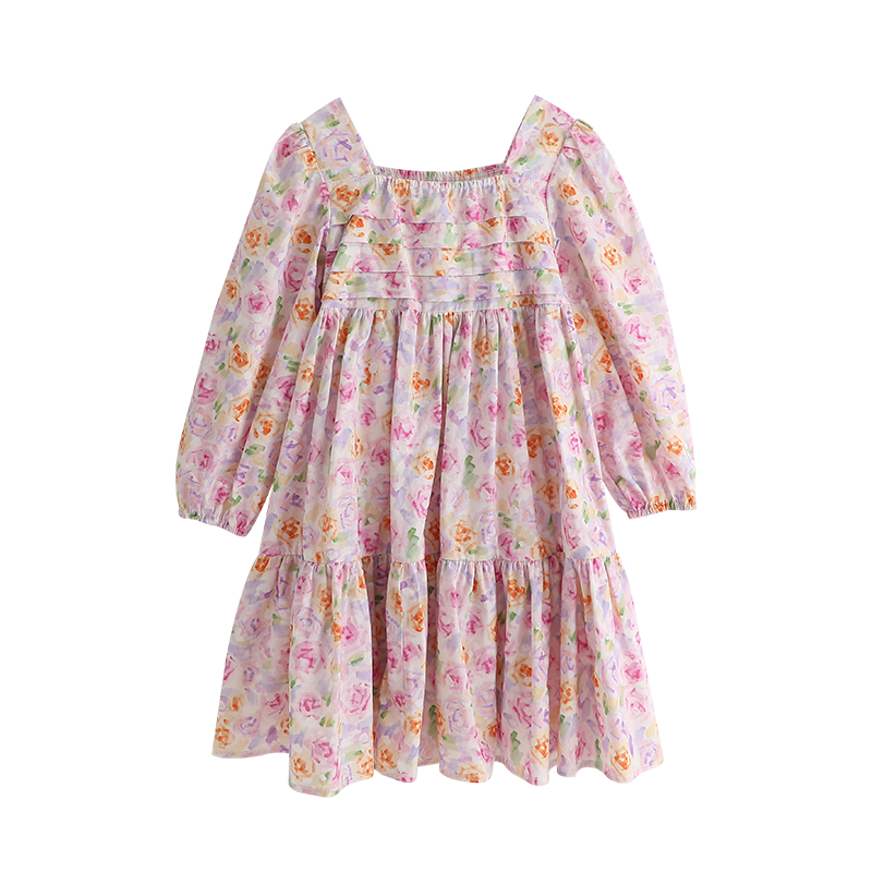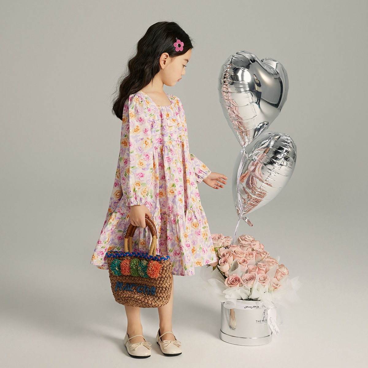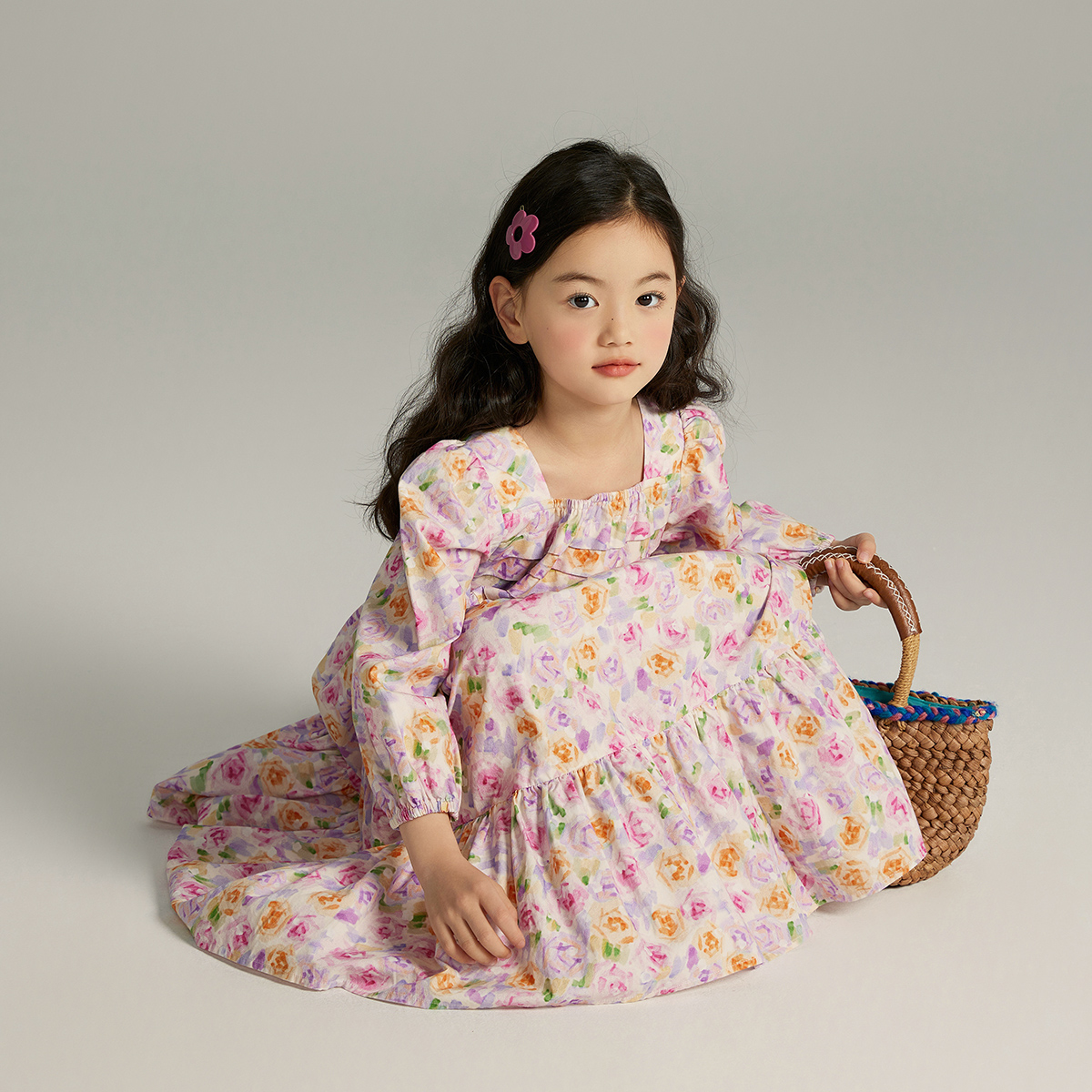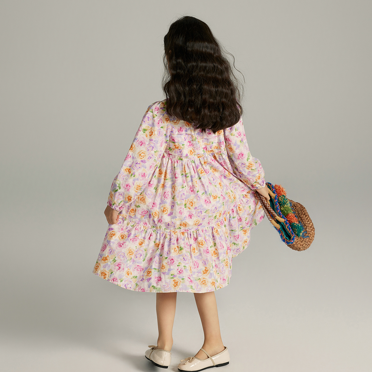 布丁哈鲁春装女童2025春秋季新款儿童休闲洋气纯棉碎花宝宝连衣裙