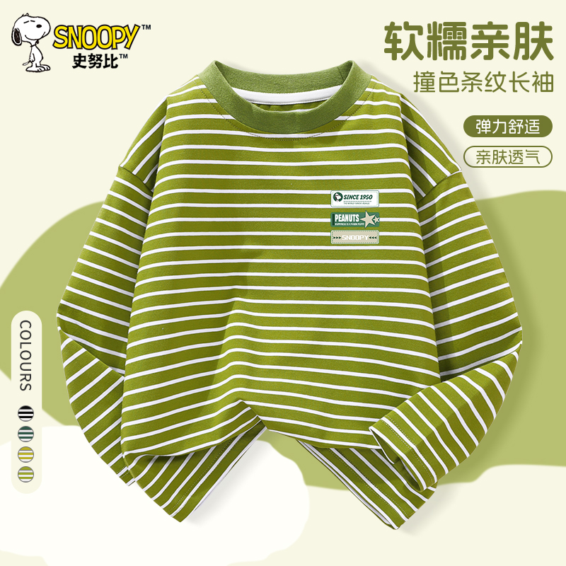 史努比童装男童长袖t恤2025新款秋季纯棉儿童薄款上衣条纹打底衫