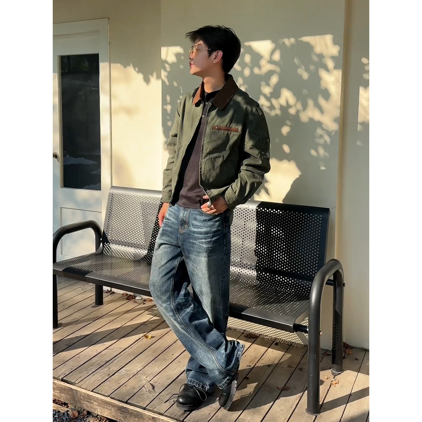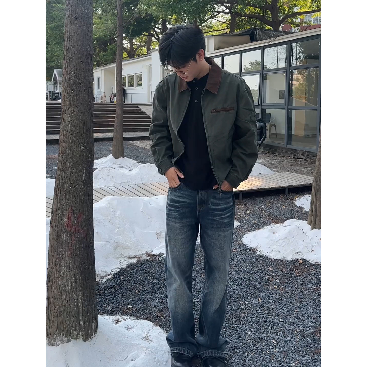 美式复古水洗底特律外套男秋季重磅boxy短宽版型炒盐做旧硬汉夹克