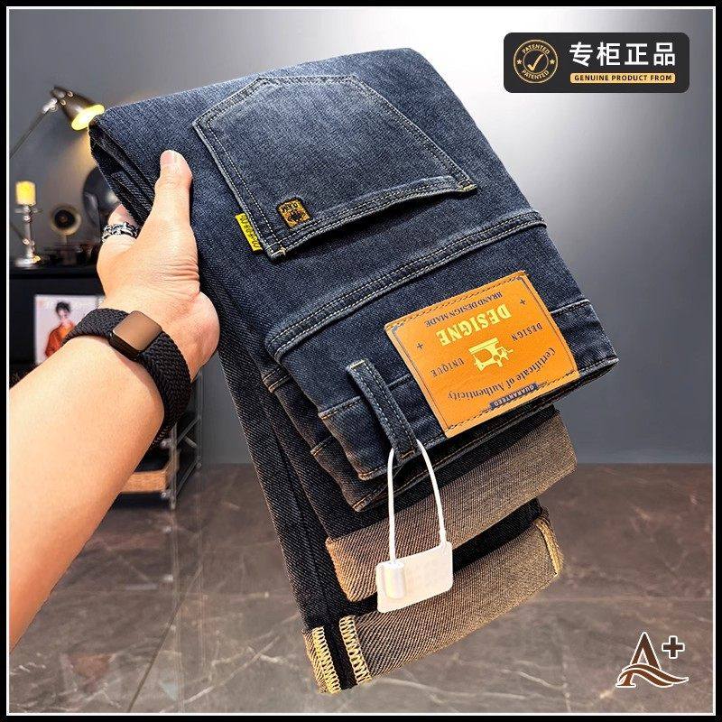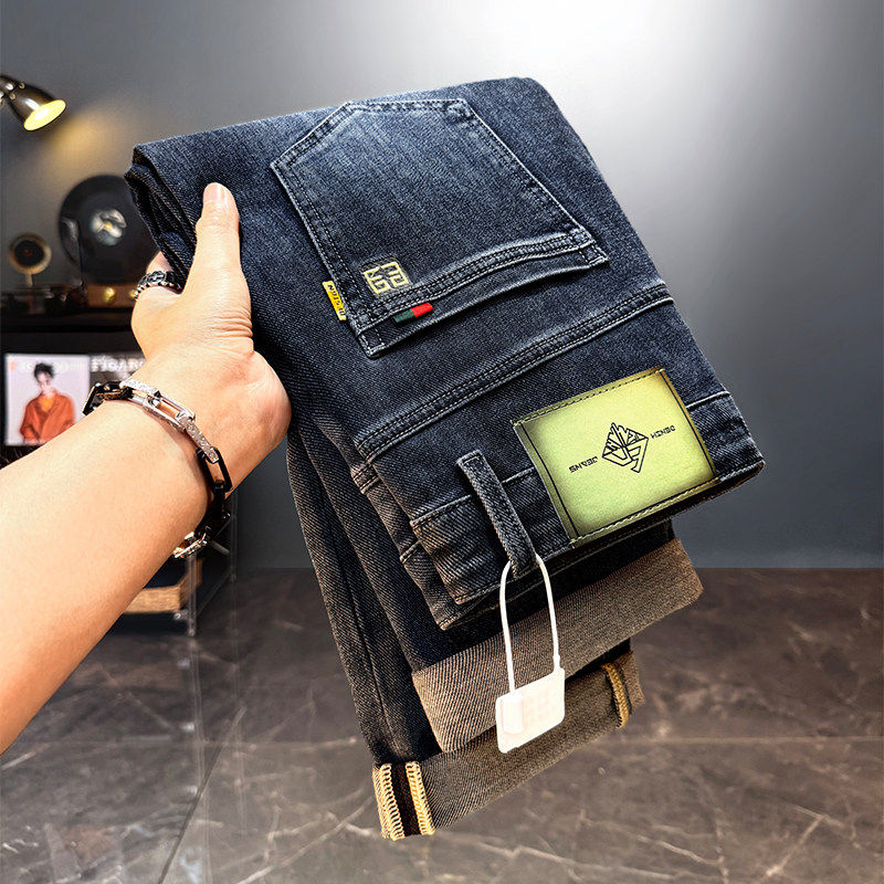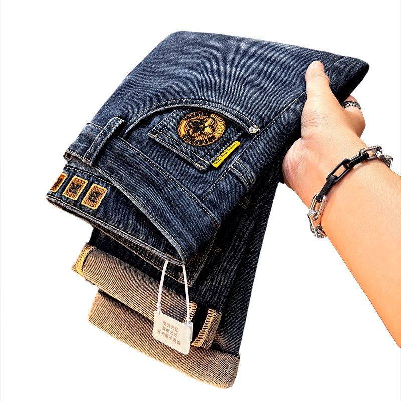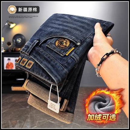 Yishion以纯官方时尚正品男装加绒牛仔裤男士宽松直筒长裤秋冬季