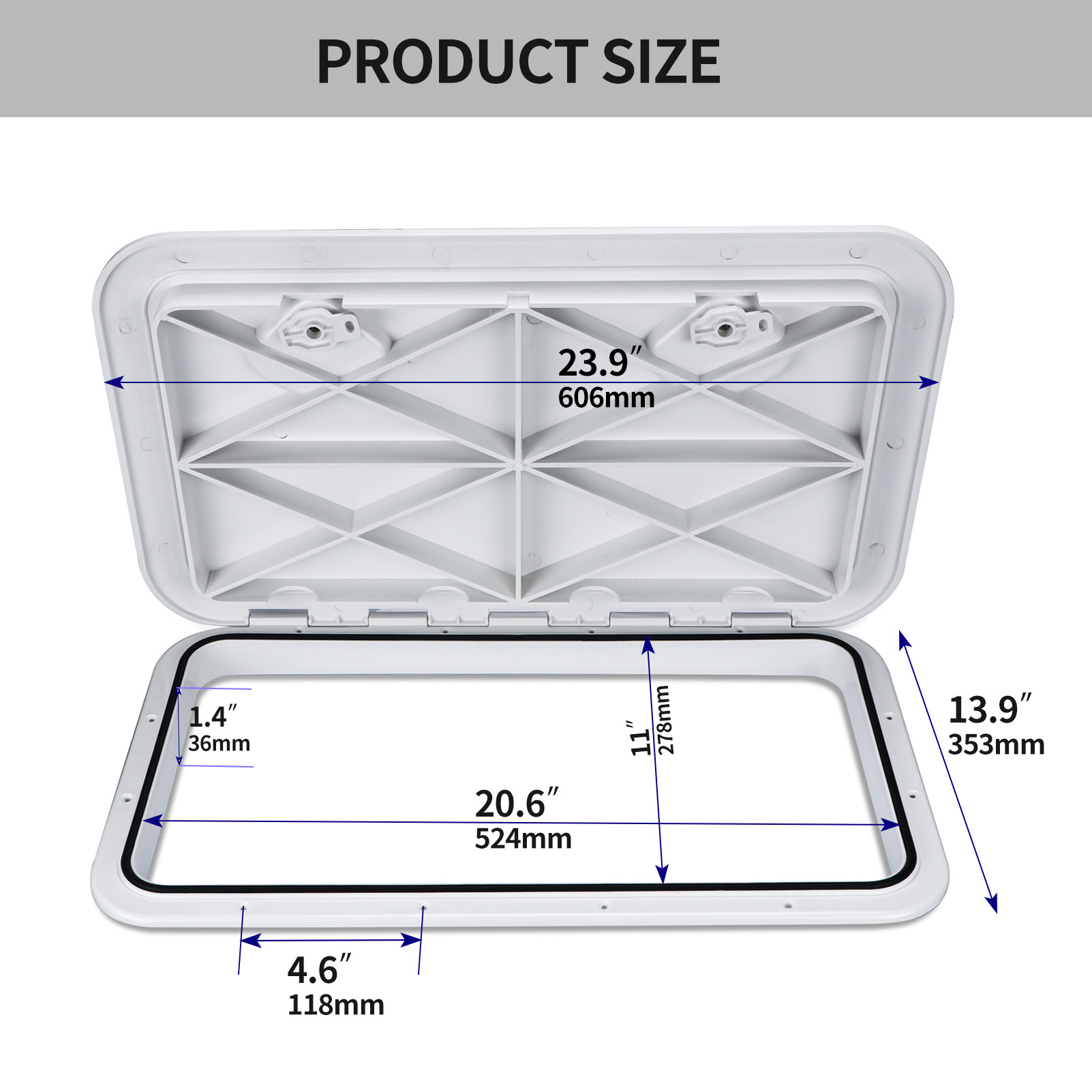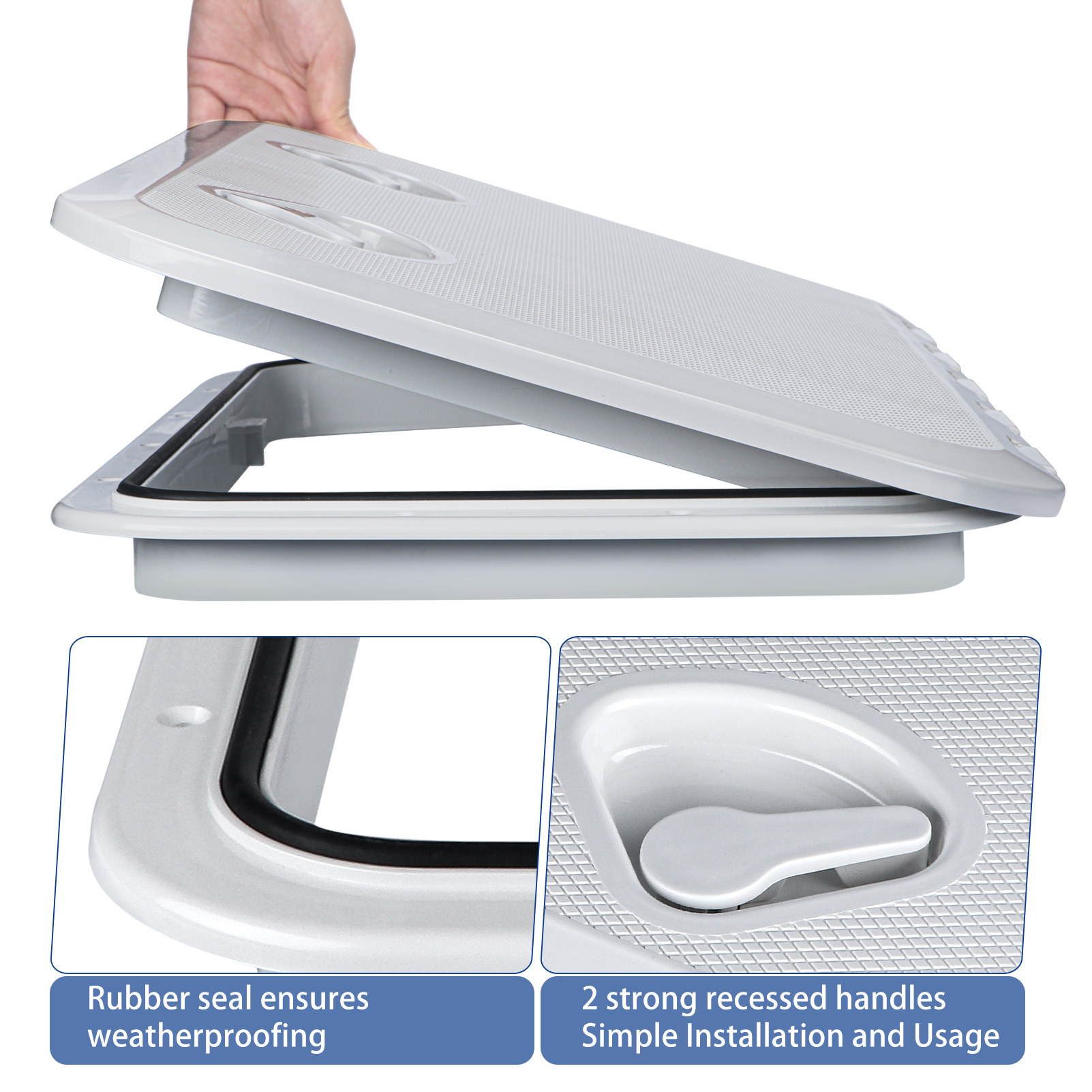 船用游艇检查孔方形甲板舱盖白色防滑手孔盖检查工作盖舱口盖黑色