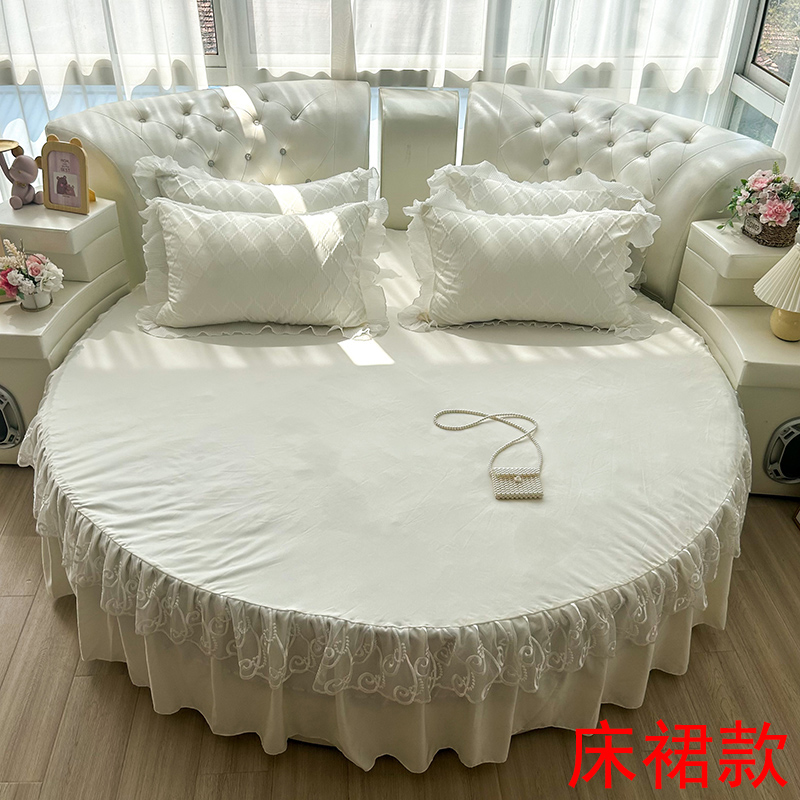 韩版圆形床裙2米直径圆床床笠2.2米直径夹棉公主风花边圆床罩定做