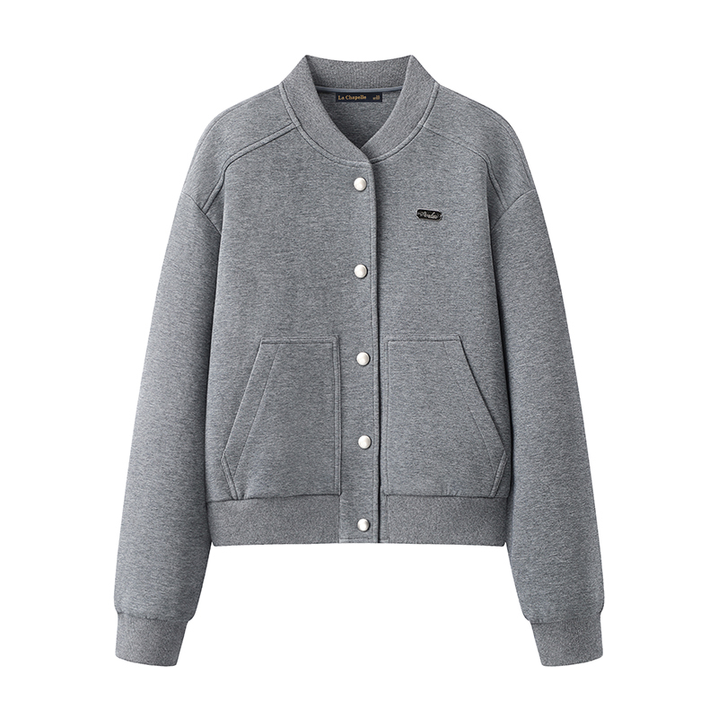 拉夏贝尔/La Chapelle复古百搭棒球服女春季新款百搭宽松灰色外套