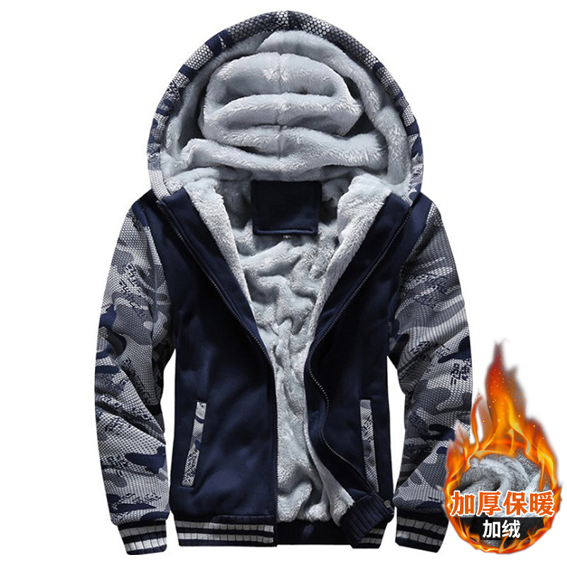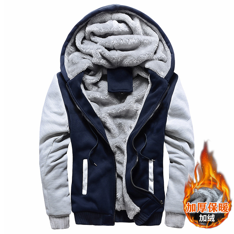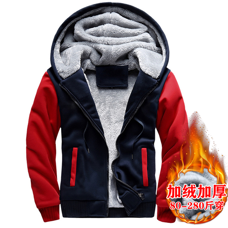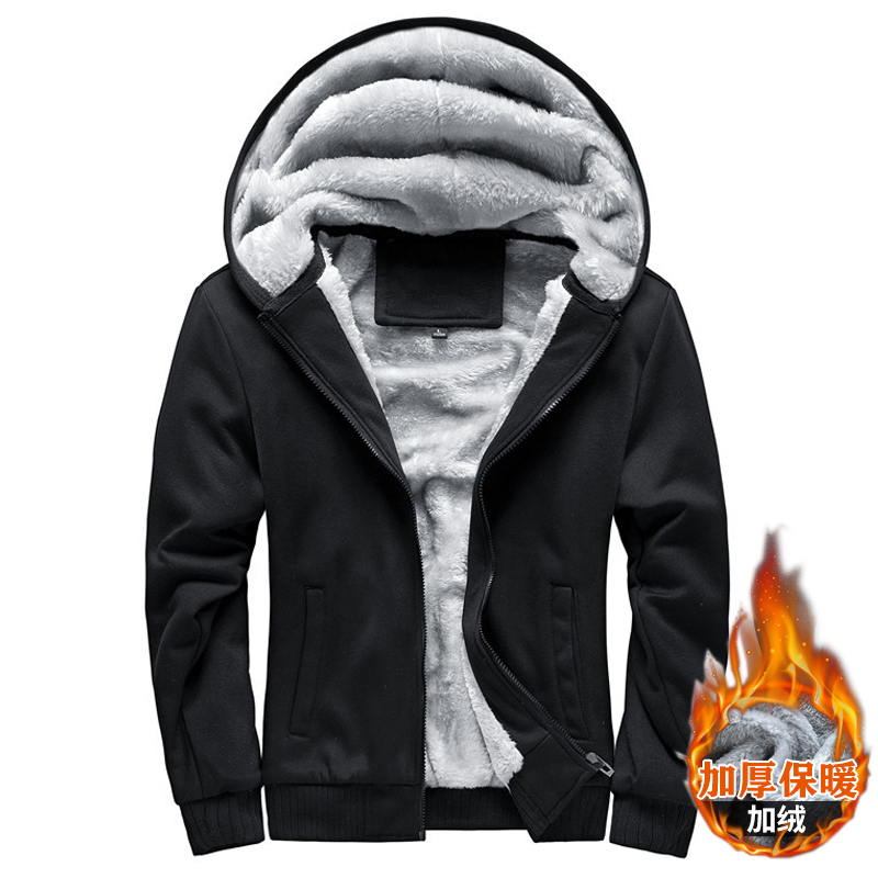2021新款加绒加厚卫衣秋冬大码男装外套青年学生棉袄连帽抓绒开衫