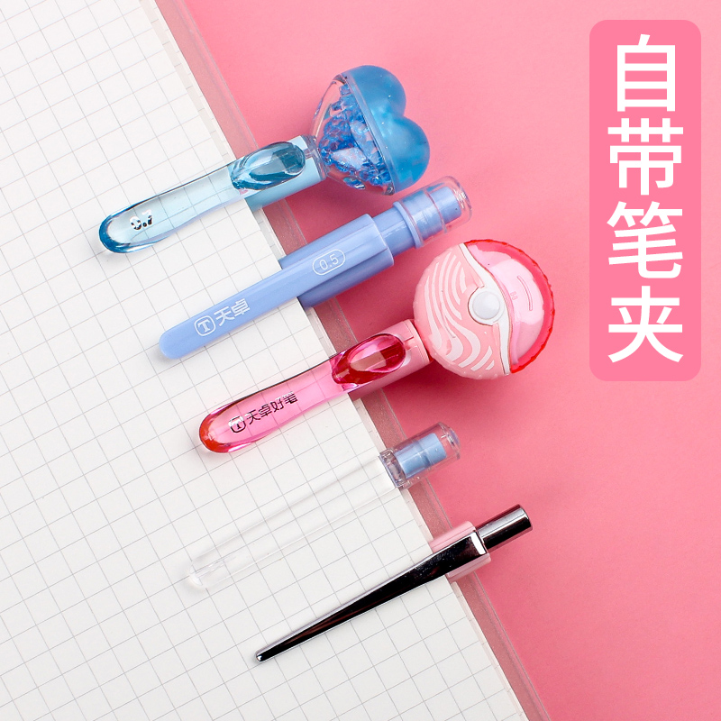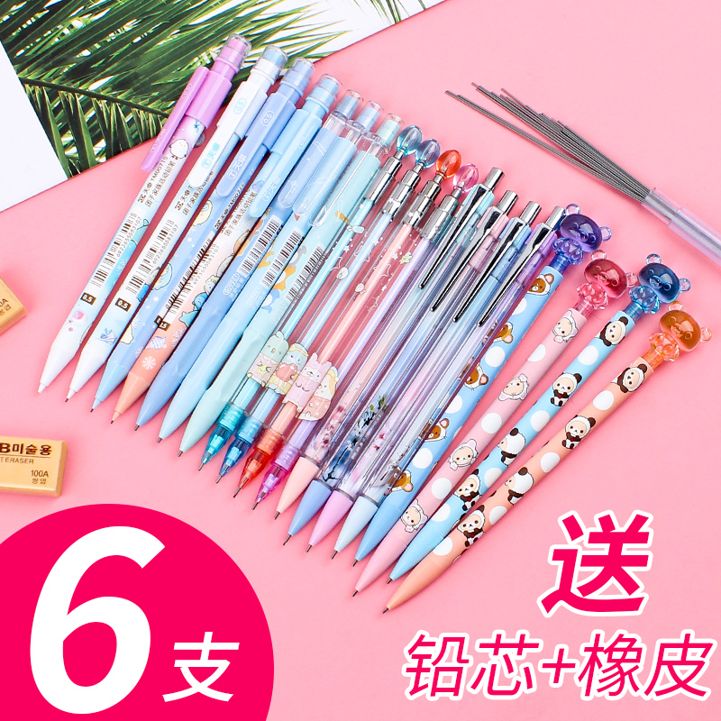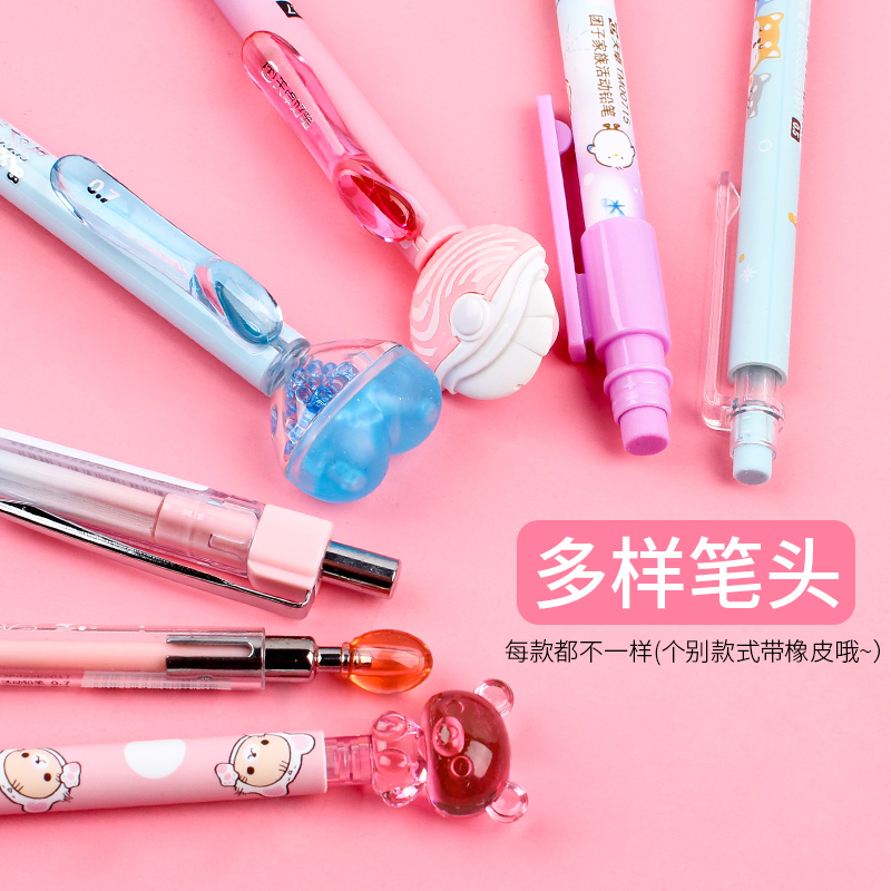 可爱写不断自动铅笔按动式小清新金属笔夹儿童0.50.7活动铅笔免削