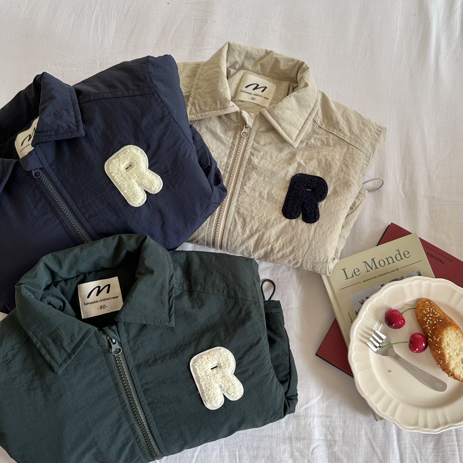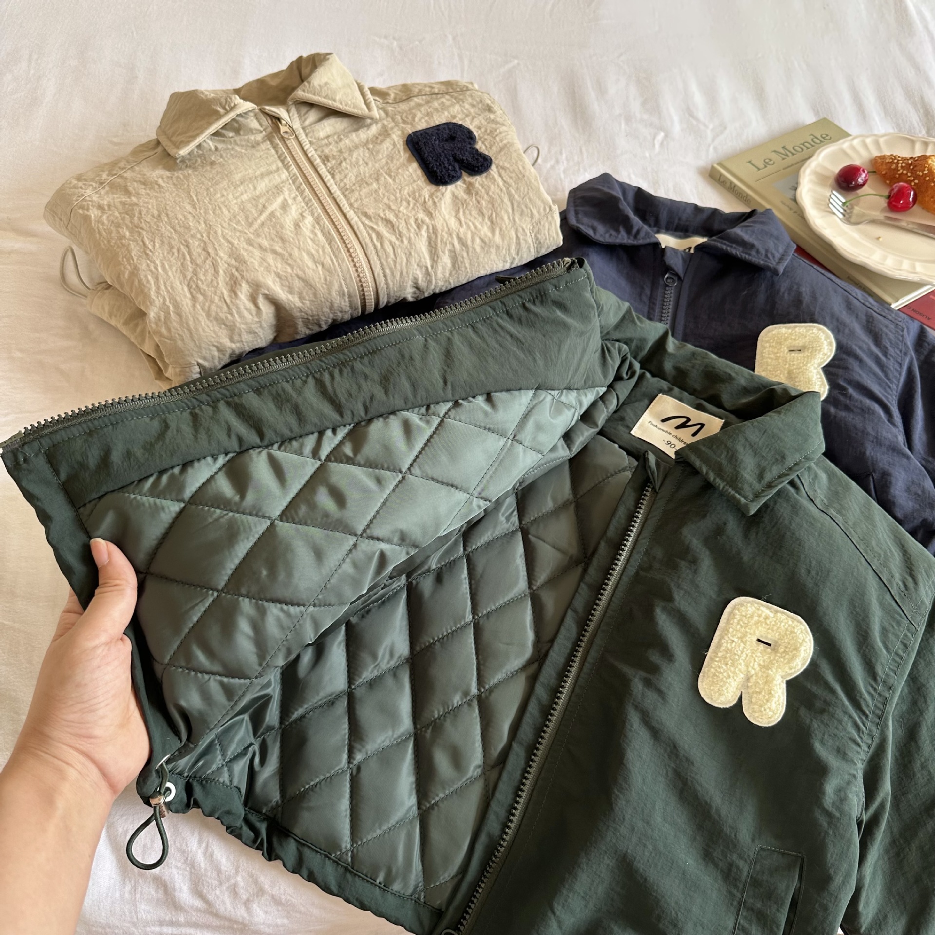 小派克~休闲风~翻领棉衣冬季新品男女童纯色绣棉服宝宝短款薄棉衣