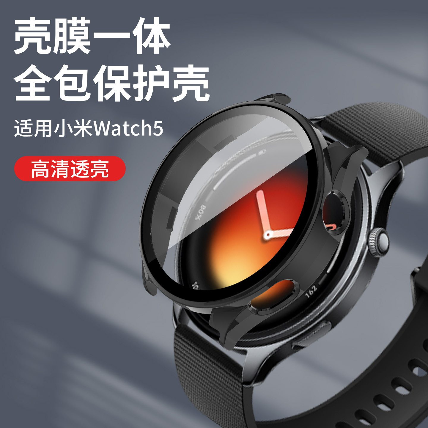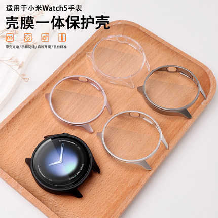 适用于小米手表watch5保护壳防摔壳膜一体全包半包边框保护套Watch5镂空防磕碰防刮表壳pc钢化膜外壳透明配件
