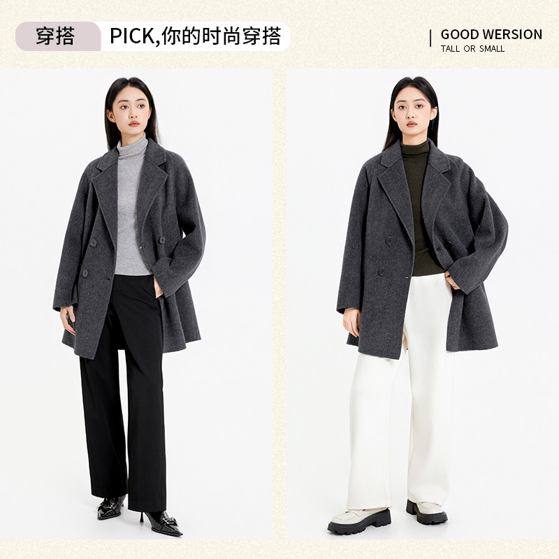 傲丝度高级感格雷系灰色羊毛呢大衣女小个子中长款双面呢子外套