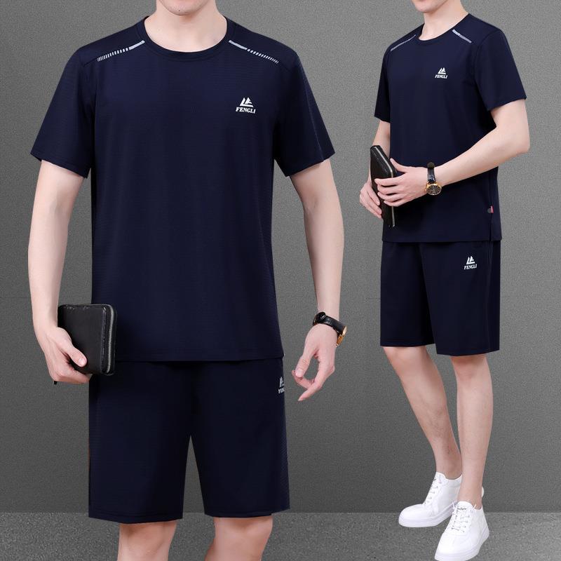 休爸年男爸装夏装套装冰丝短袖恤士LKQ2121夏季中老圆领父亲运动