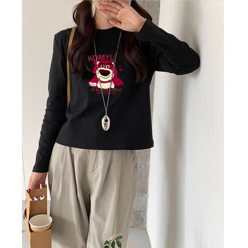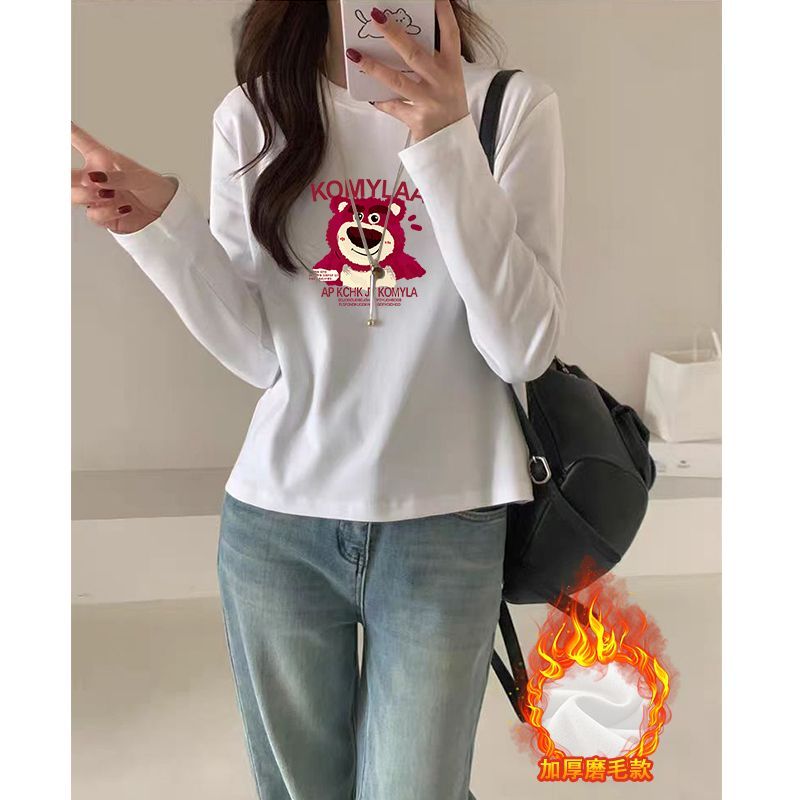 纯棉白色长袖t恤女春秋2024新款小个子圆领体恤卫衣内搭打底衫秋