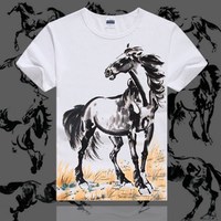 t恤男女短袖圆领半袖夏情侣装宽松马水墨印花文字体恤中国风男装